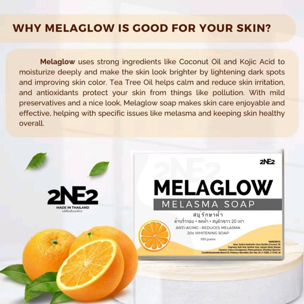2NE2 MelaGlow Melasma Soap helps you achieve brighter, clearer, and more even-toned skin with every wash.