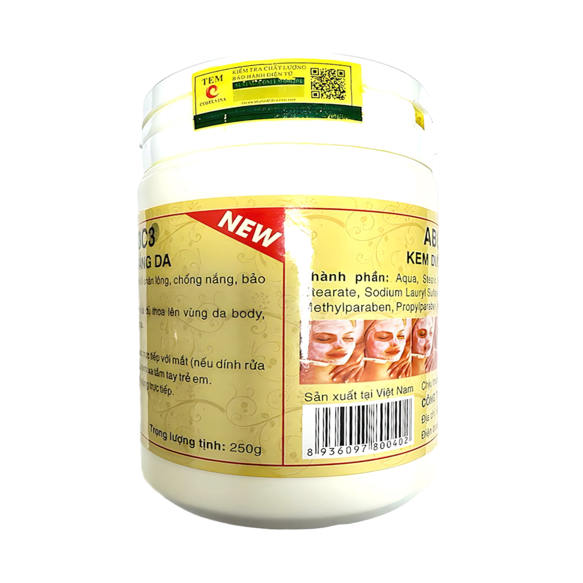 Achieve brighter, smoother, and more even-toned skin with Abutine 3C3 Whitening Body Cream, a powerful body-lightening formula designed to deliver visible results in as fast as 7–10 days. Made with an advanced whitening complex, this cream helps fade dark spots, reduce pigmentation, and promote a naturally radiant glow—without peeling, burning, or skin thinning.