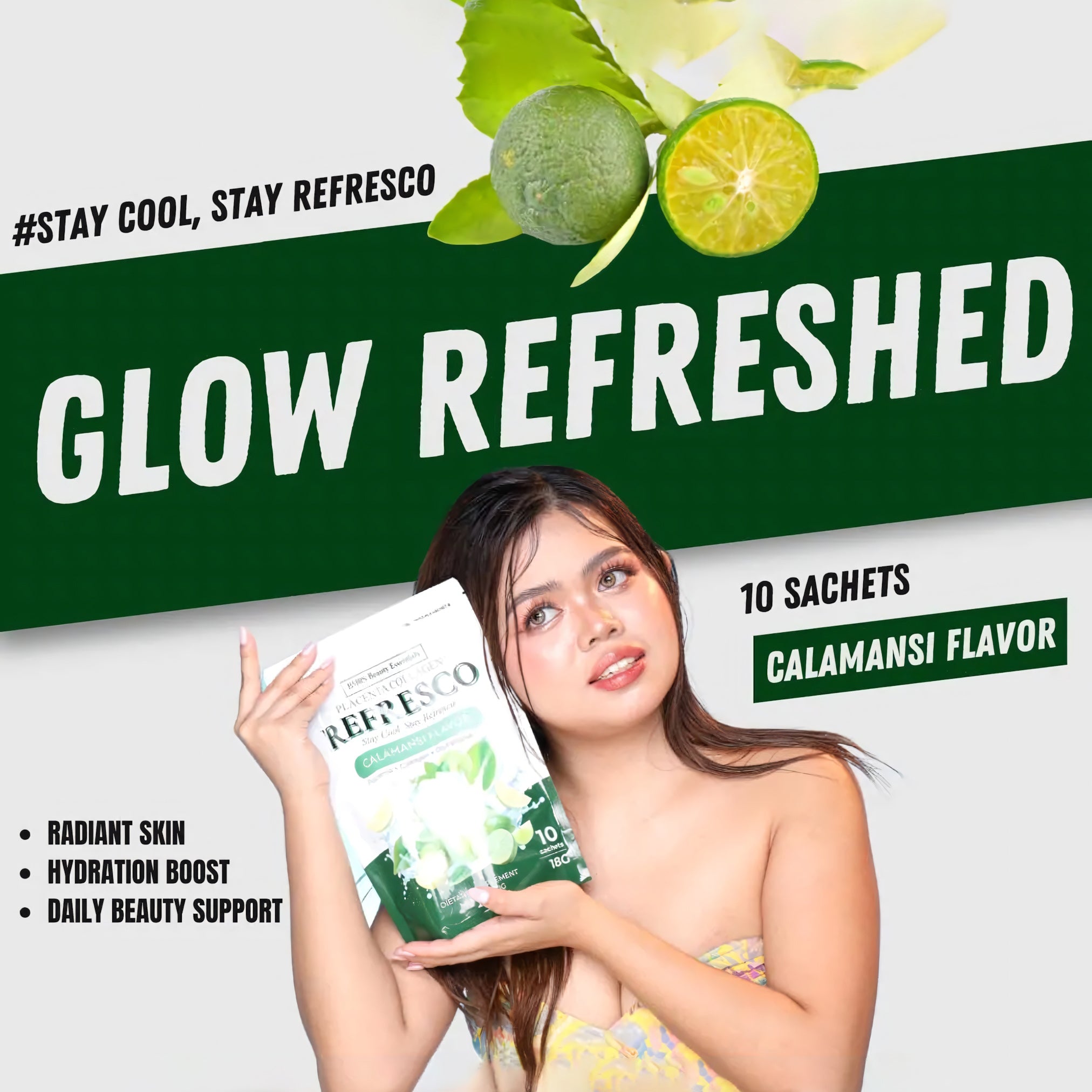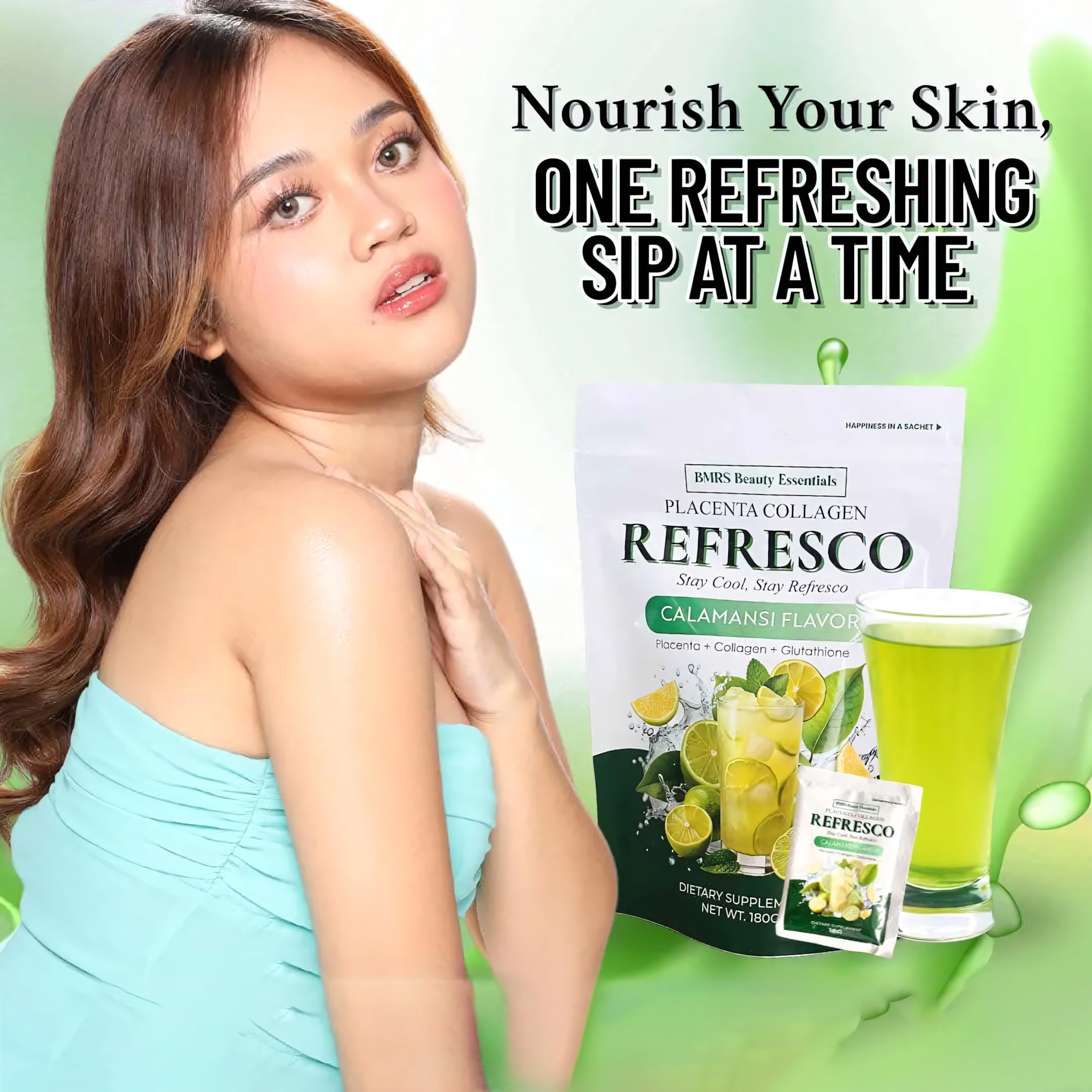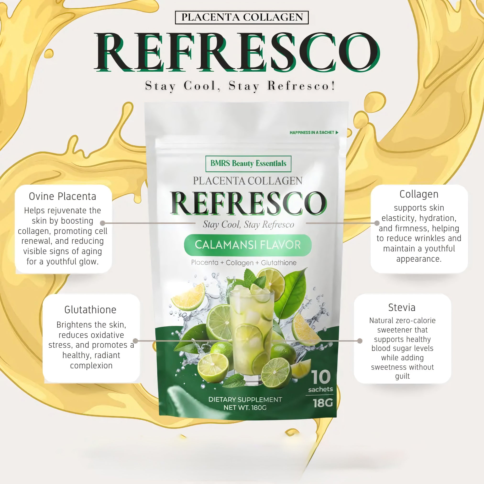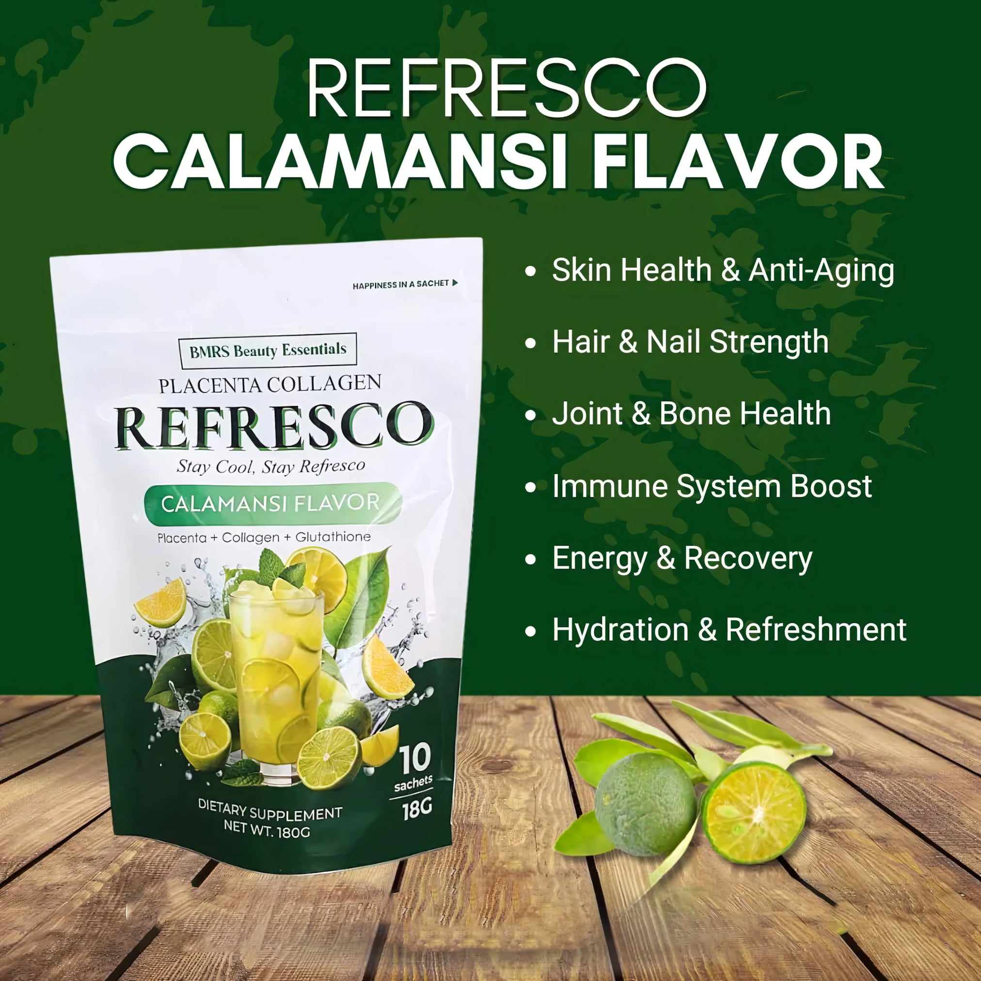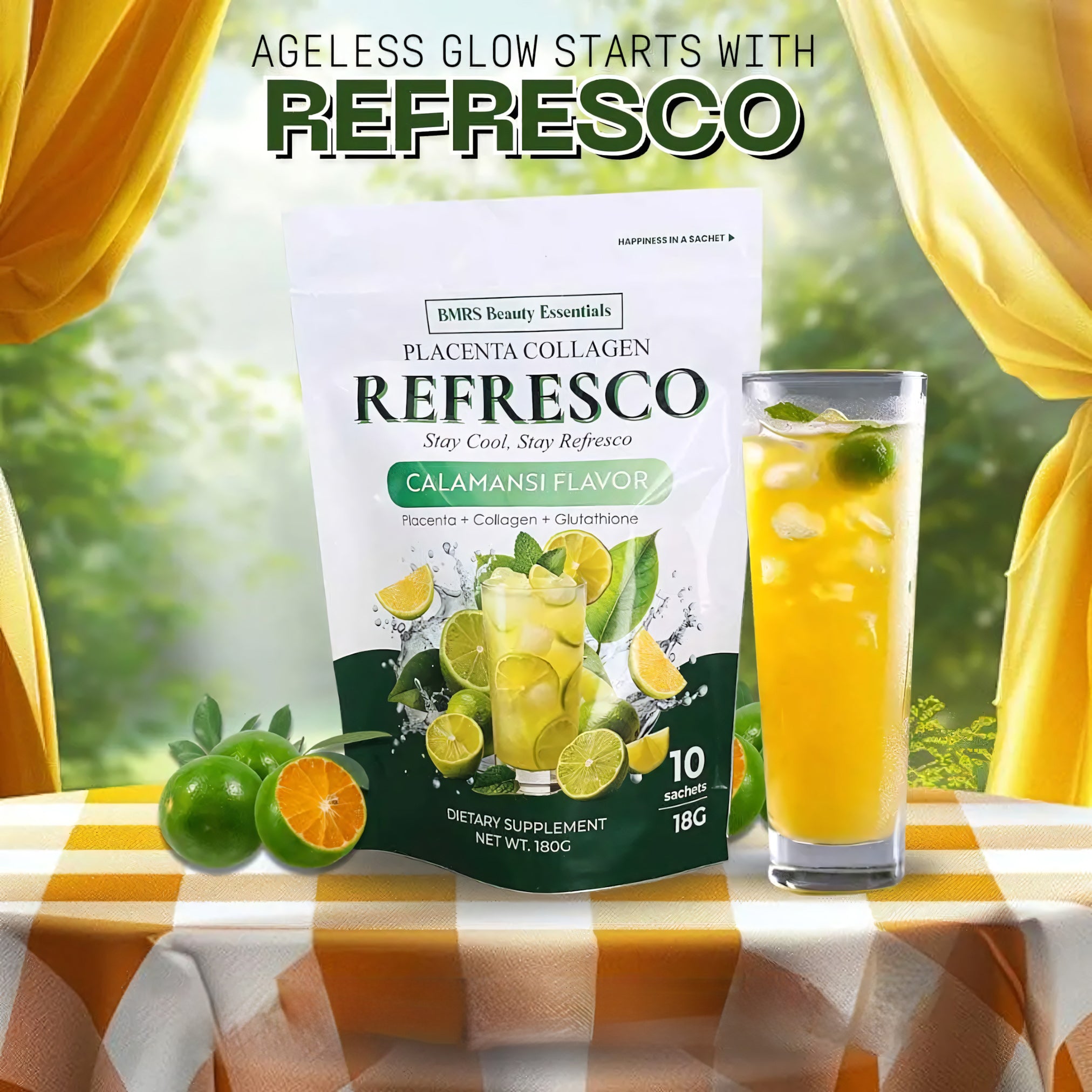 Refresh, nourish, and glow from within with BMRS Placenta Collagen Refresco, now in the zesty and invigorating Calamansi flavor! This premium beauty-and-wellness drink mix is formulated with Placenta Extract, Collagen, and Glutathione to support skin health, immunity, and overall vitality.