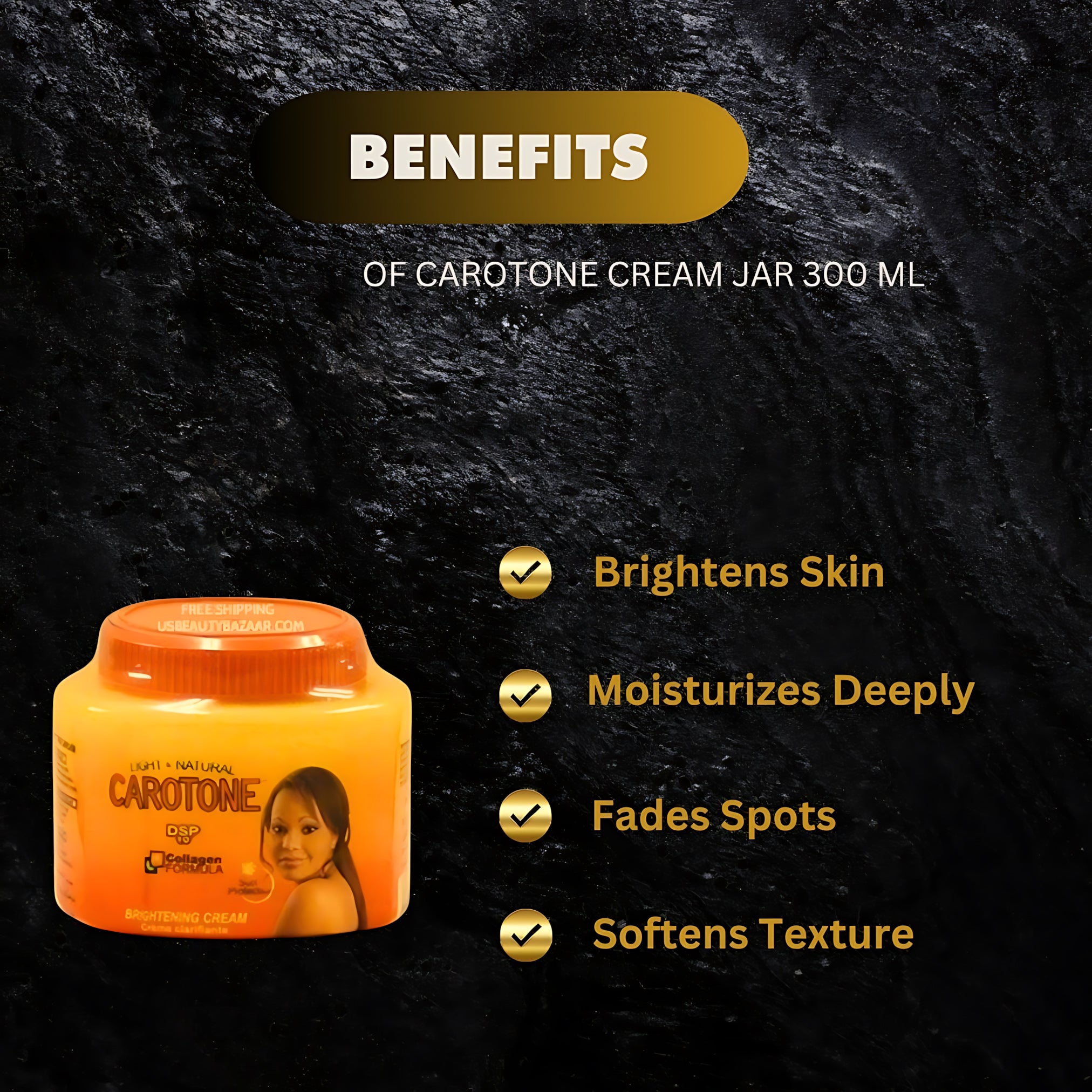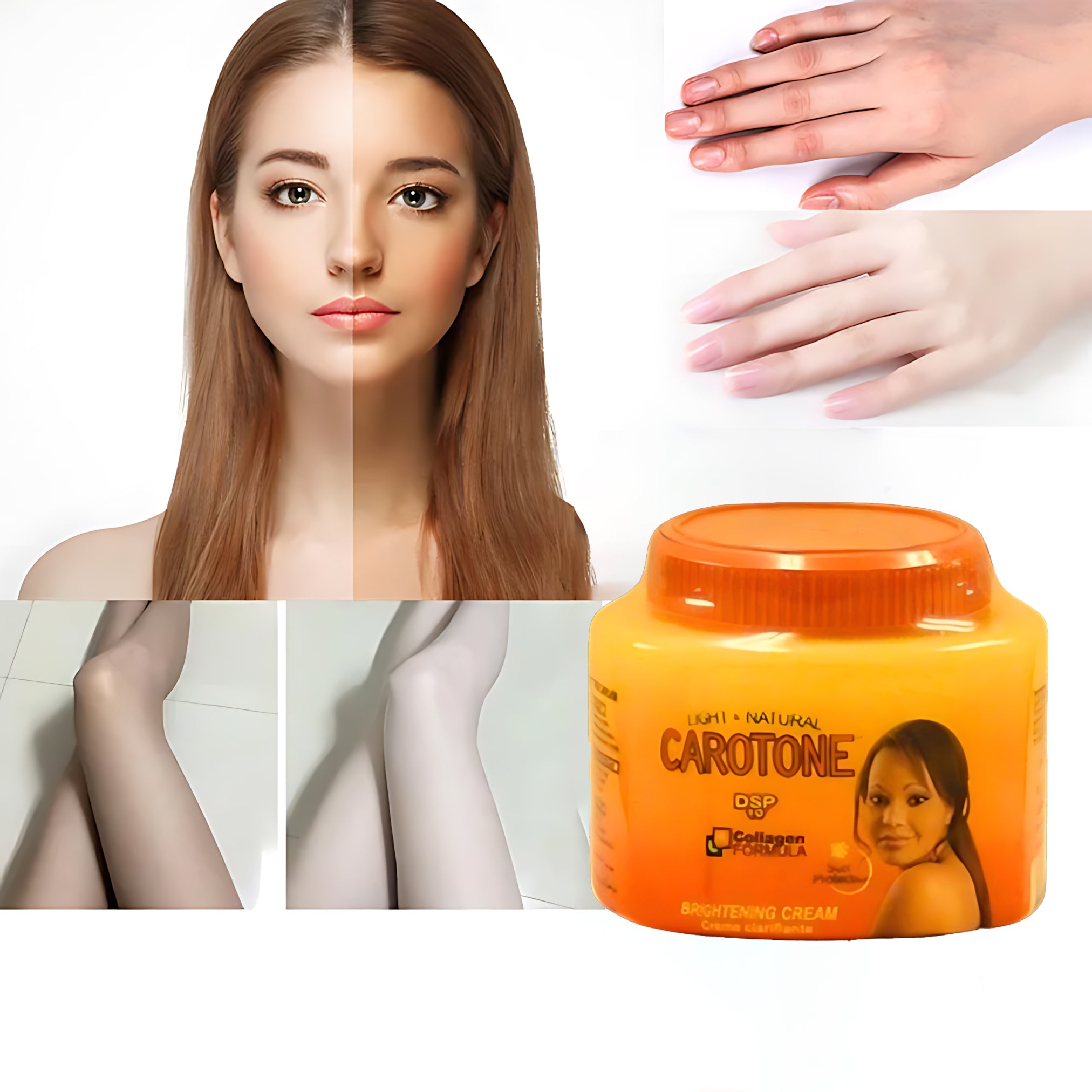 Reveal a brighter, smoother, and more radiant complexion with Carotone Natural Glow Clarifying Cream. This advanced face and body cream is formulated with Collagen and Carrot Oil Extracts to nourish, rejuvenate, and clarify the skin for a natural, healthy glow.