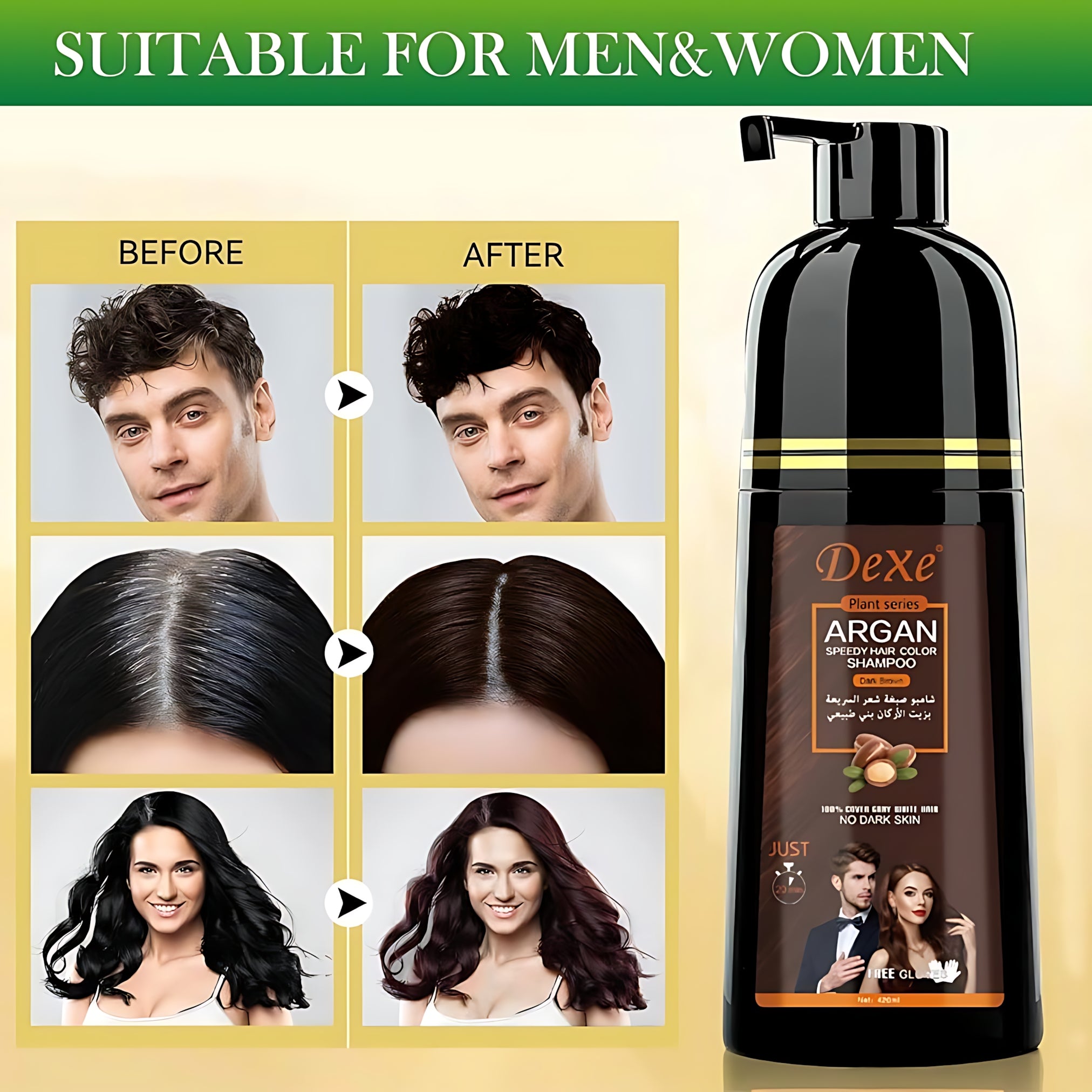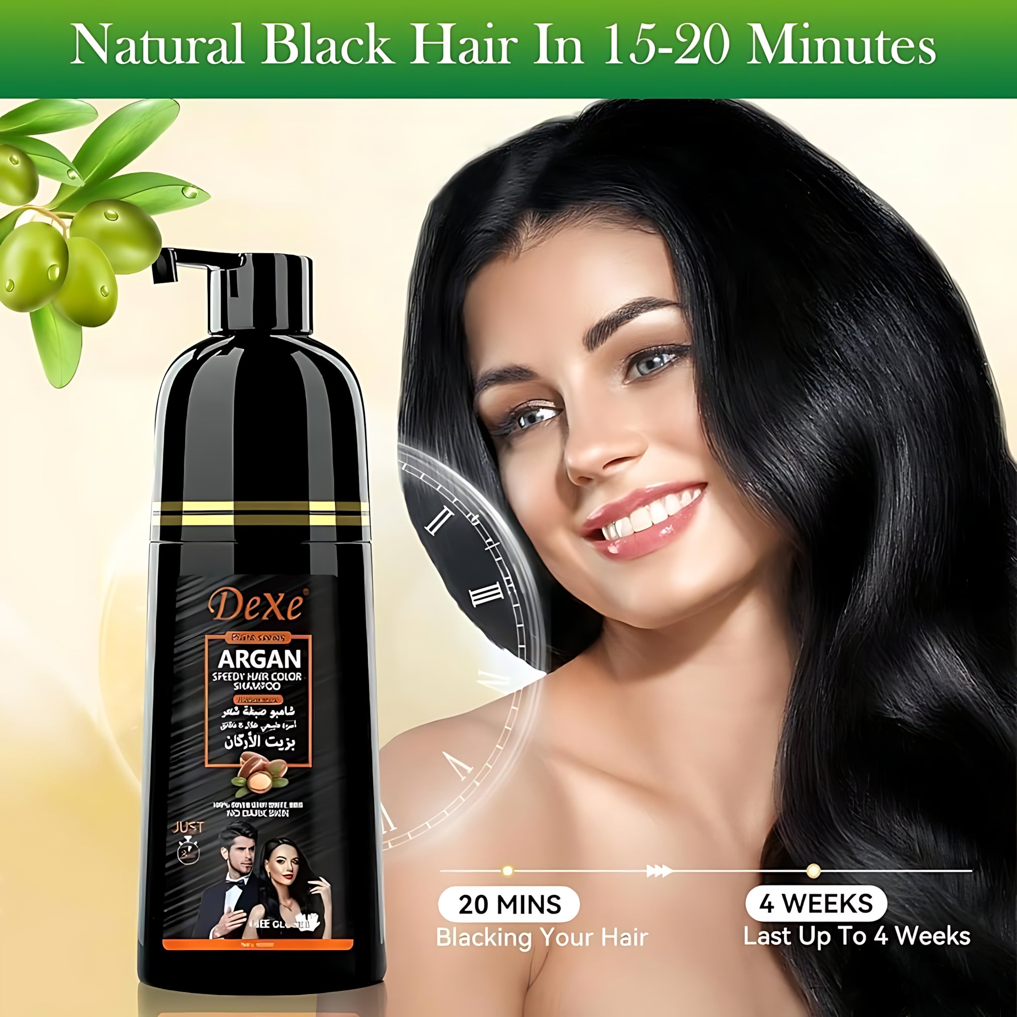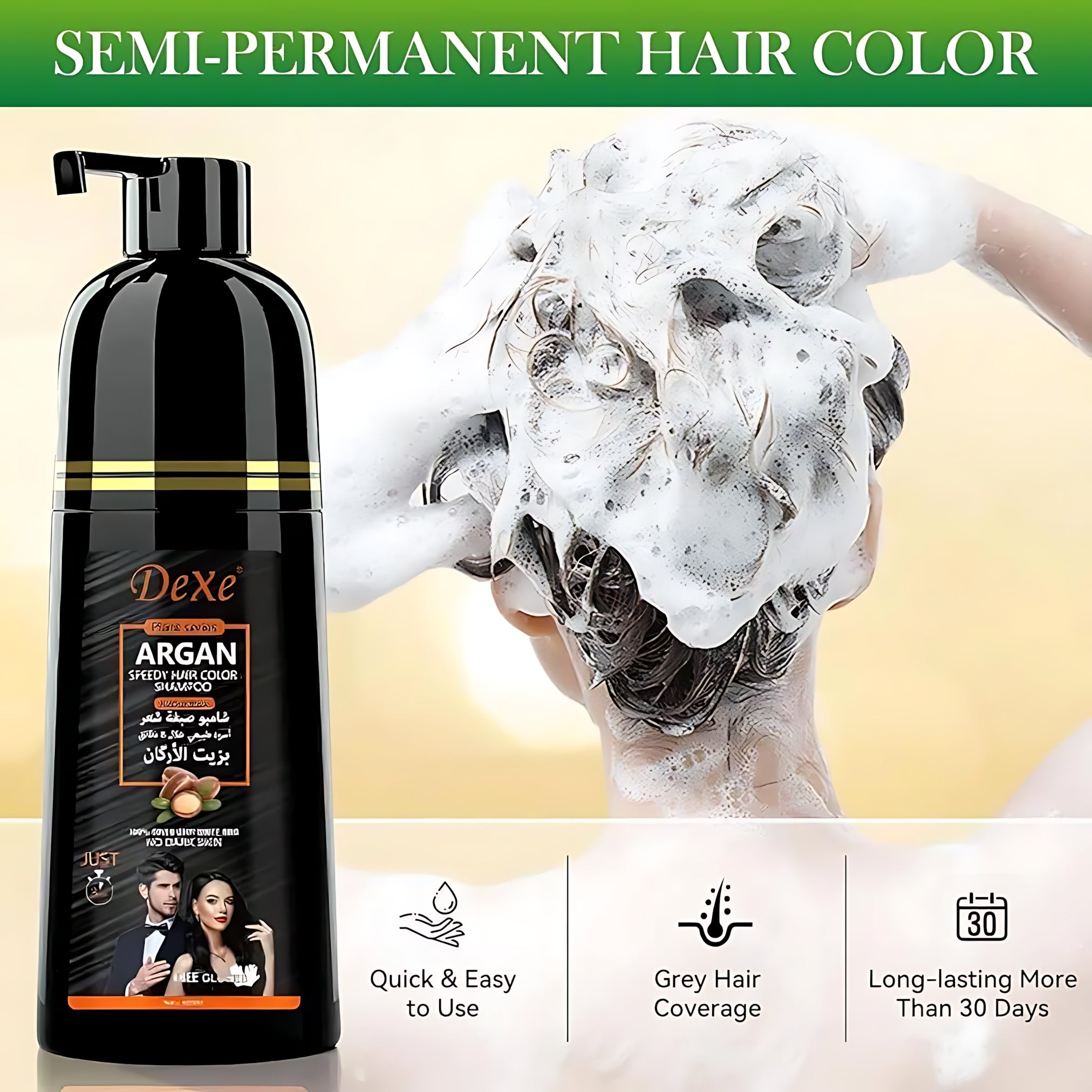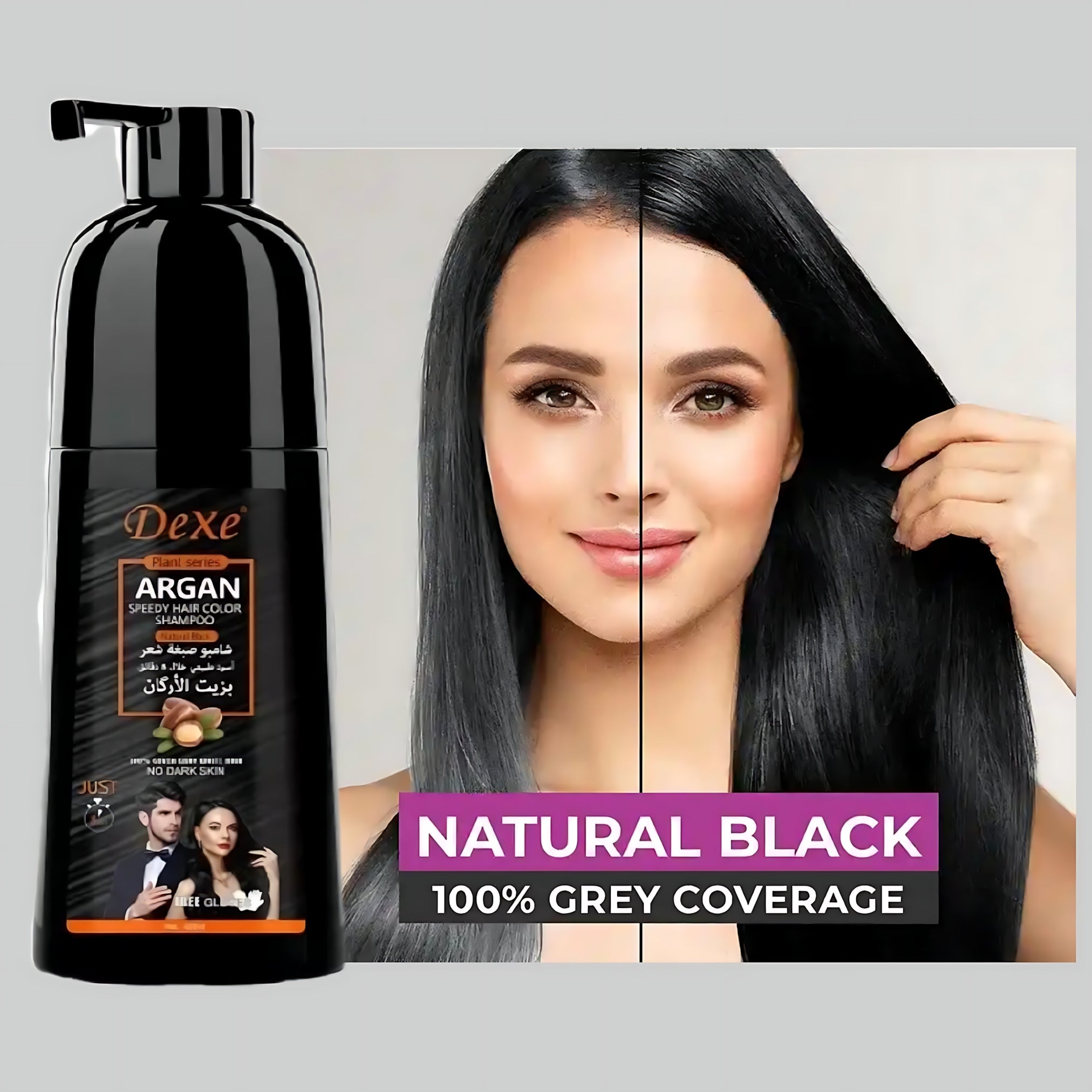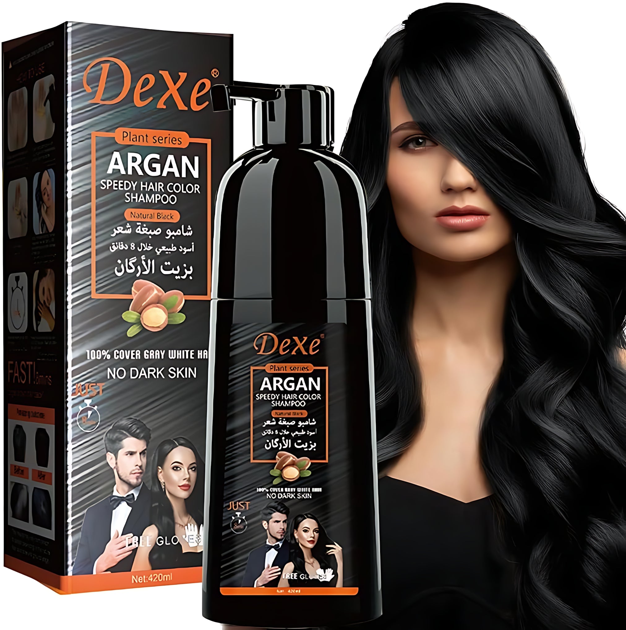 Enjoy rich black color, salon-like results, and luxurious hair care in one simple step with Dexe Natural Black Argan Speedy Hair Color Shampoo.