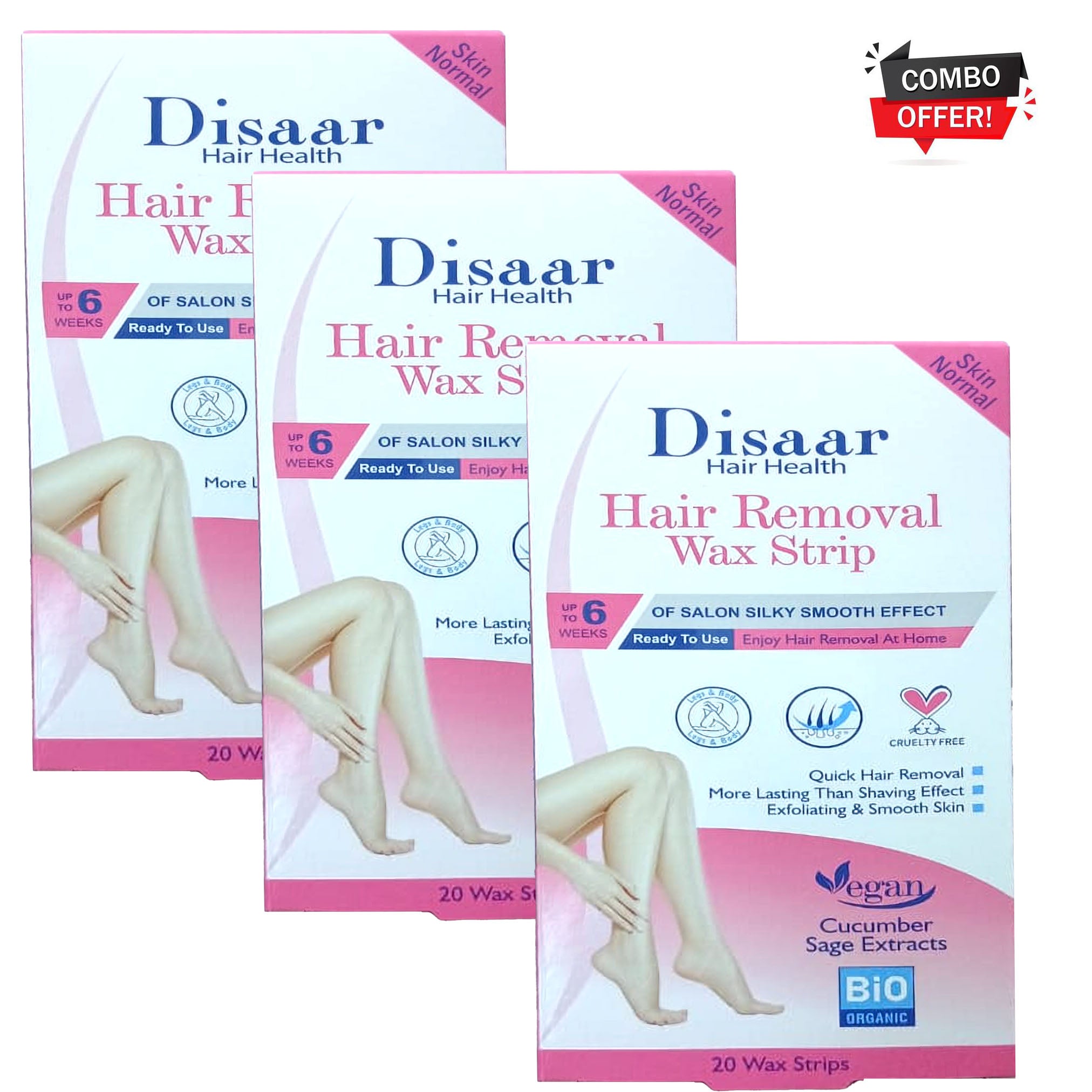Disaar Hair Health Hair Removal Wax Strips – Normal Skin (20 Strips × 3 Packs Combo)