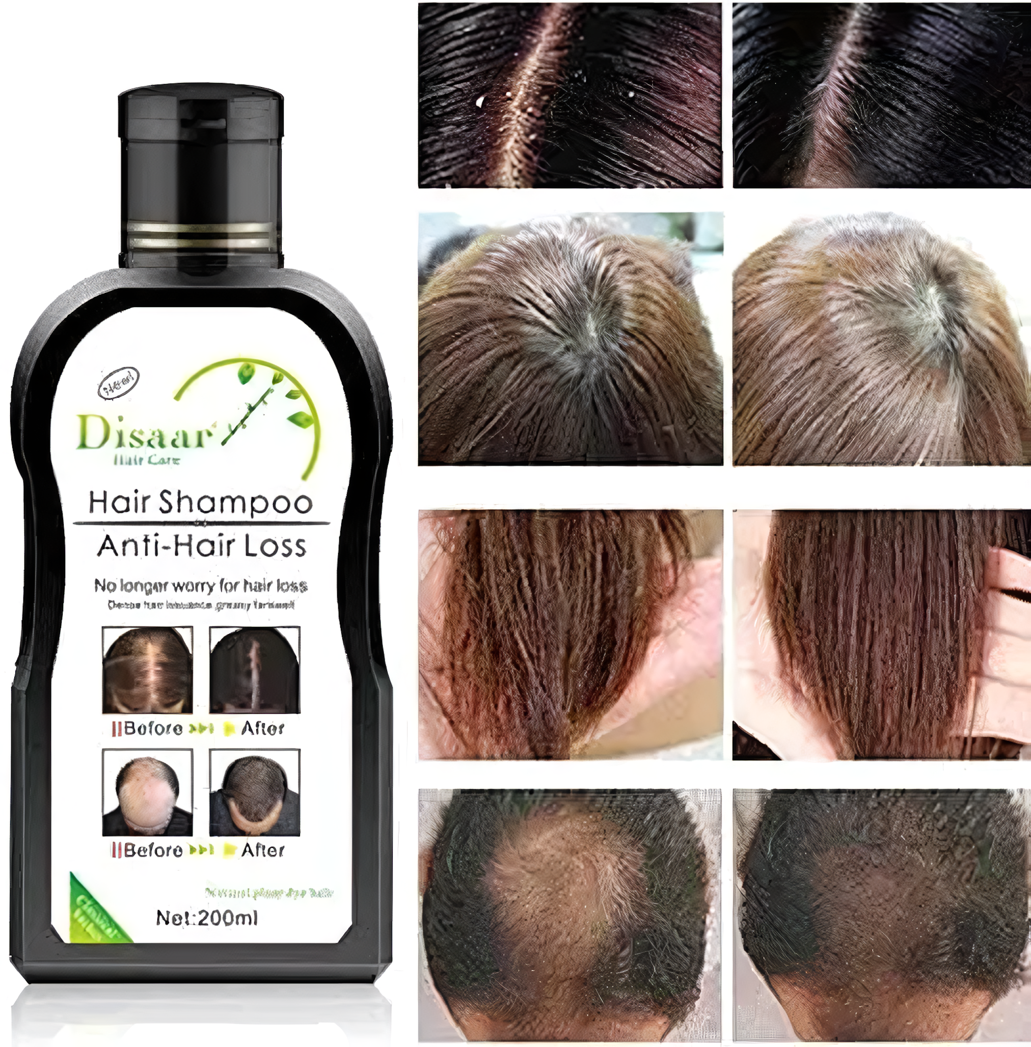 Experience professional hair care with Disaar Anti Hair Loss Shampoo, specially formulated to prevent hair fall and promote healthy hair growth for both men and women. This high-quality Chinese herbal hair treatment deeply cleanses the scalp, strengthens hair roots, and nourishes each strand to restore volume and vitality.