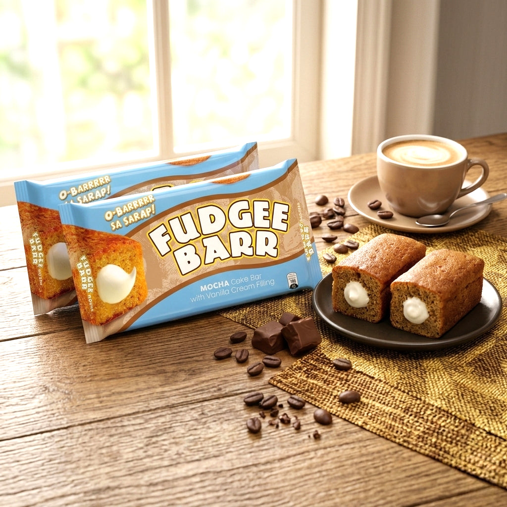 Indulge in the rich mocha cake and creamy vanilla filling of Fudgee Barr — a simple snack that brings joy in every bite. ☕🍫✨