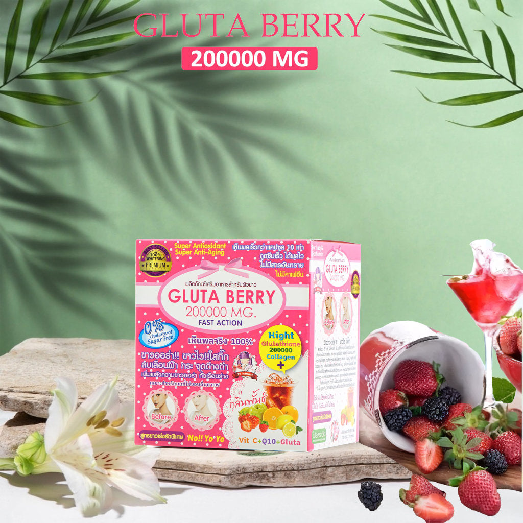Experience the Transformation: Gluta Berry 200,000mg Drink is the ultimate all-in-one solution for achieving a glowing, flawless complexion. Packed with powerful ingredients, each sachet offers convenience and a delicious flavor, making your skincare journey easier and more enjoyable. Reveal your inner beauty and regain your confidence.