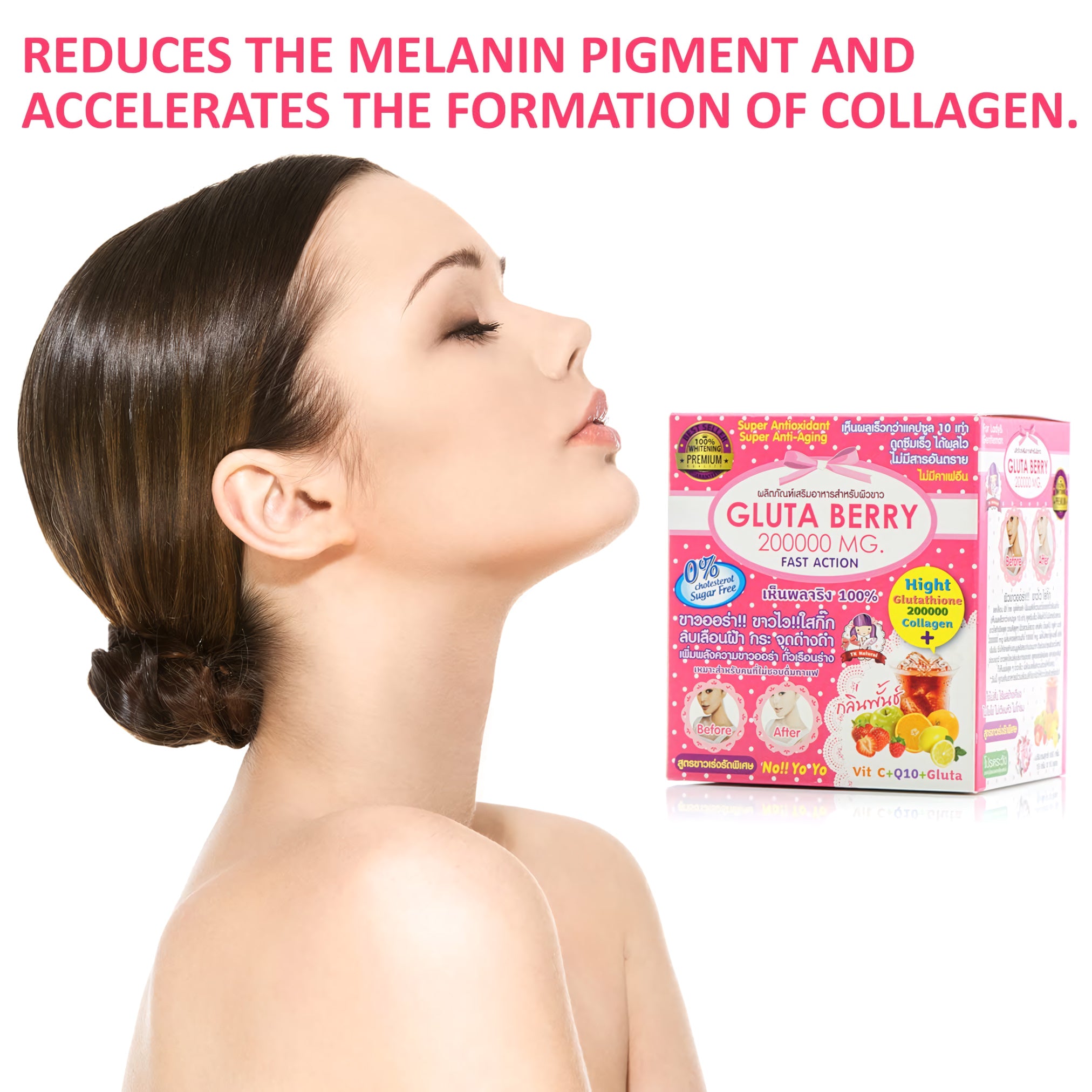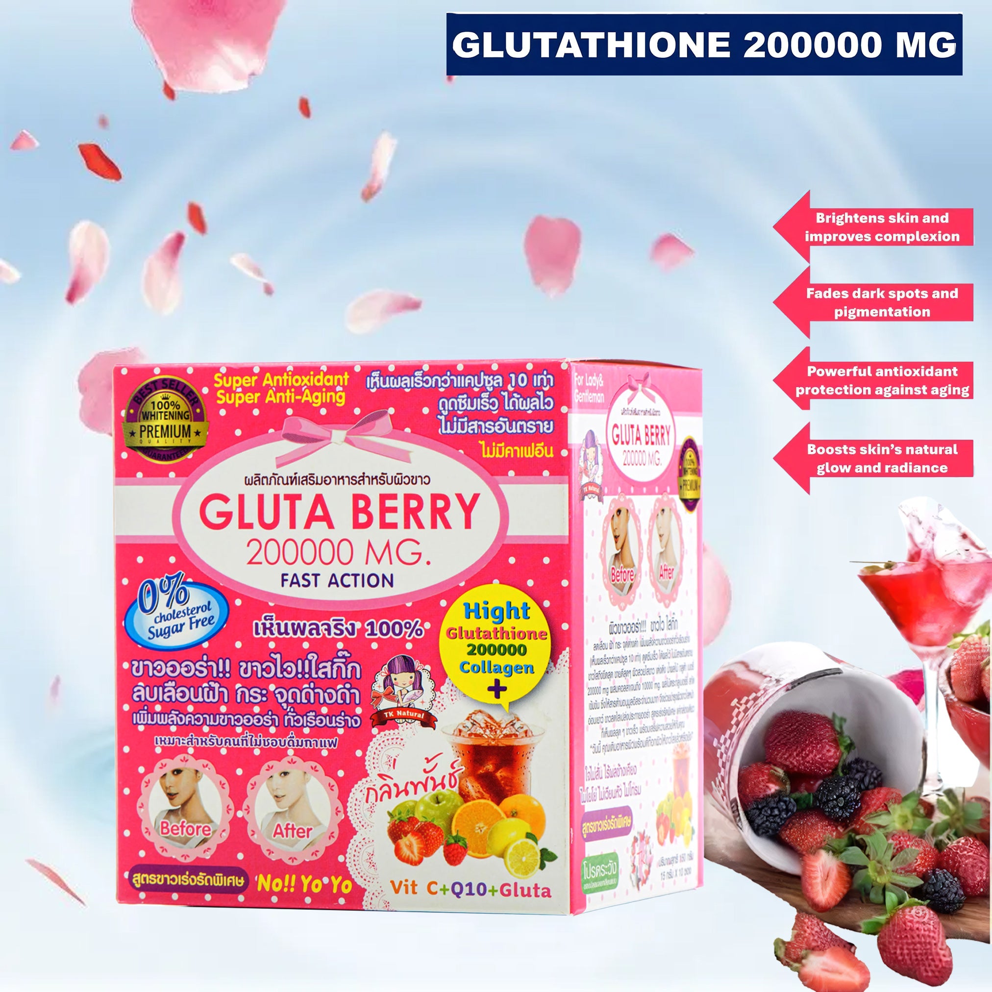 Introducing Gluta Berry 200,000mg Drink: Your Ultimate Skin Whitening, Anti-Aging, Acne and Wrinkle-Reducing Sachet