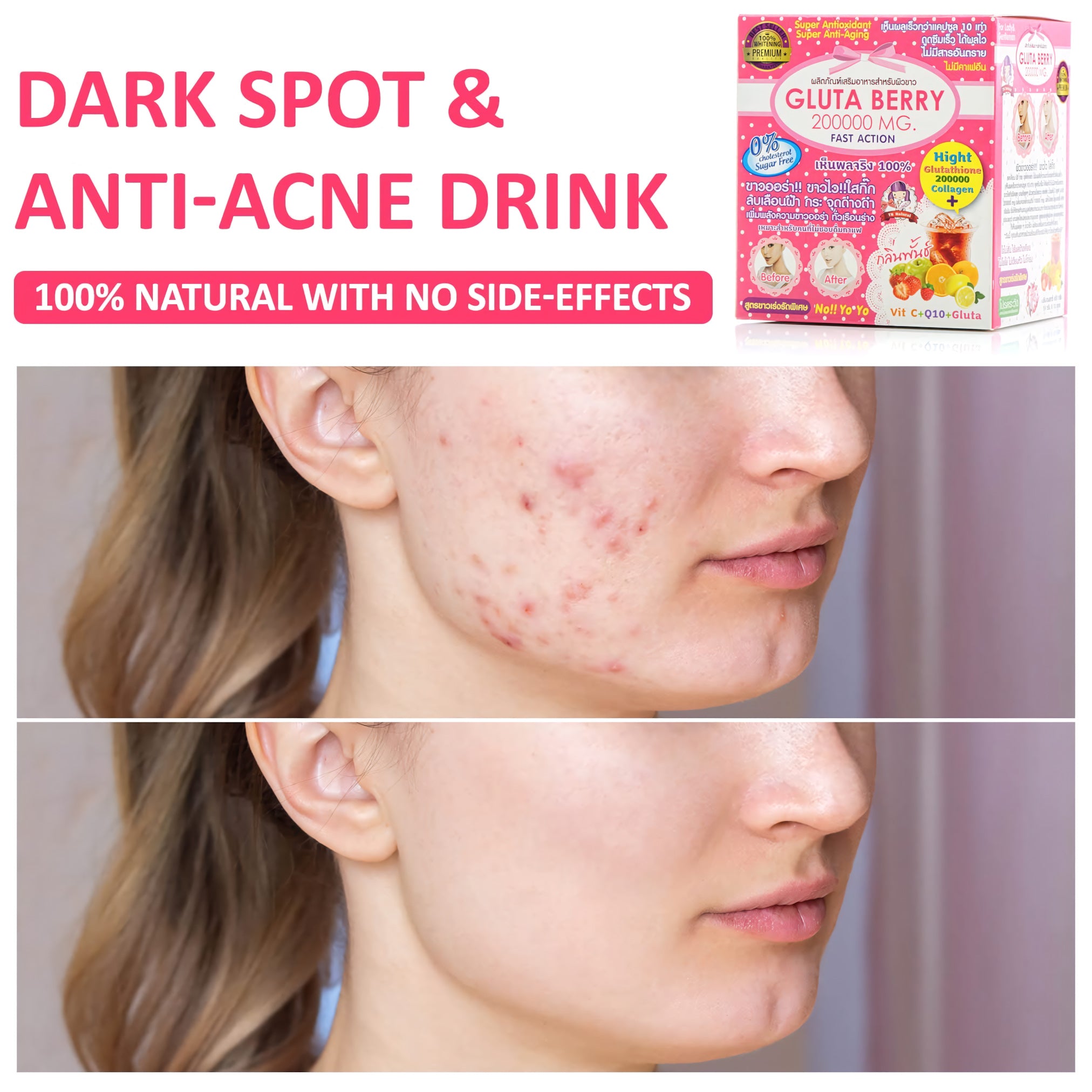 Gluta Berry 200,000mg Skin Whitening Antiaging Acne Wrinkle Reducing Powder Drink