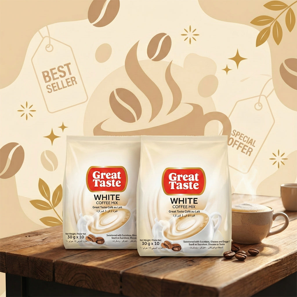 Loved by many for its mild coffee taste and creamy finish, Great Taste White Coffee is ideal for those who prefer a smoother, less bitter cup.
