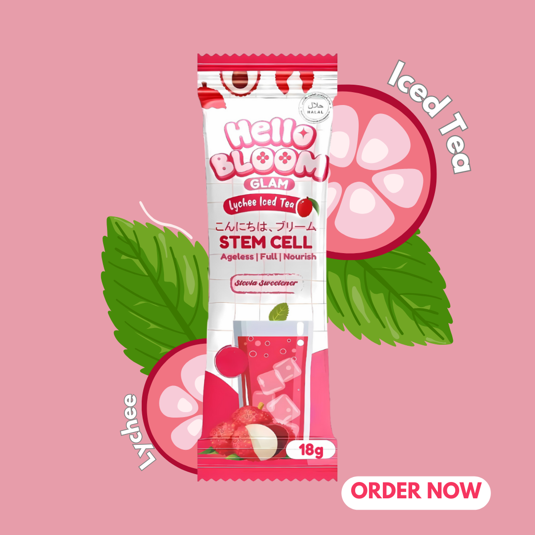 Elevate your wellness journey with Hello BLOOM GLAM Lychee Iced Tea, a refreshing and revitalizing beverage designed to nourish your body and mind. This delightful lychee-flavored drink combines the power of stem cell extract with a blend of other key ingredients that work synergistically to promote ageless vitality.