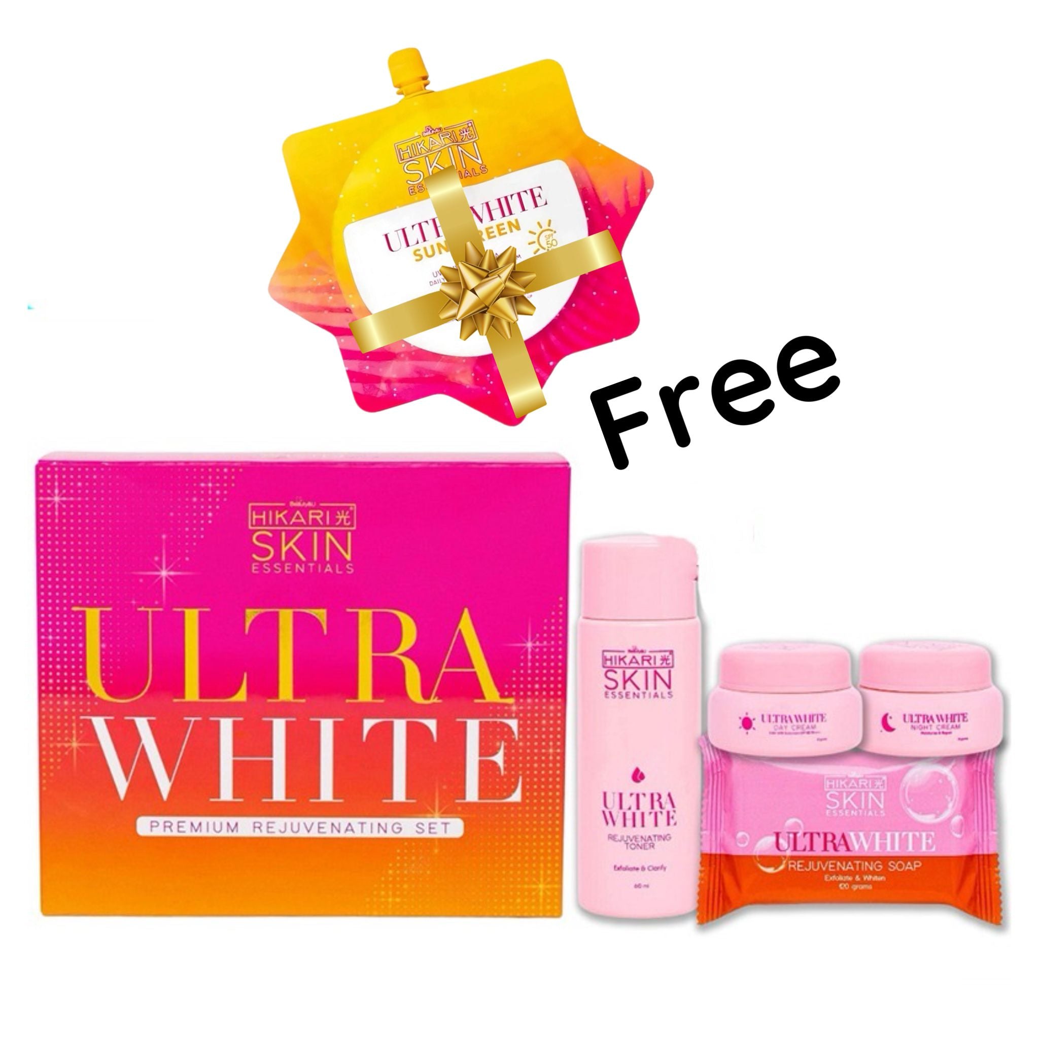 Ultra White Premium Rejuvenating Set by Hikari, a powerful skincare system designed to effectively address various skin concerns and promote a brighter, more youthful complexion. This rejuvenating set is carefully formulated to deliver remarkable results and is suitable for all skin types.