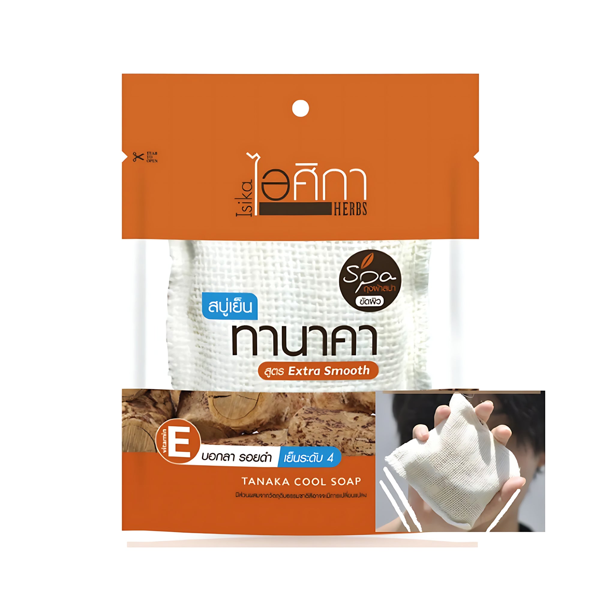 Experience spa-like skin care at home with Isika Tanaka Cool Soap, a unique herbal soap enriched with Tanaka wood powder and Vitamin E. Packaged in a special spa bag that doubles as a gentle massage sponge, this soap offers both deep cleansing and exfoliation in one convenient product.