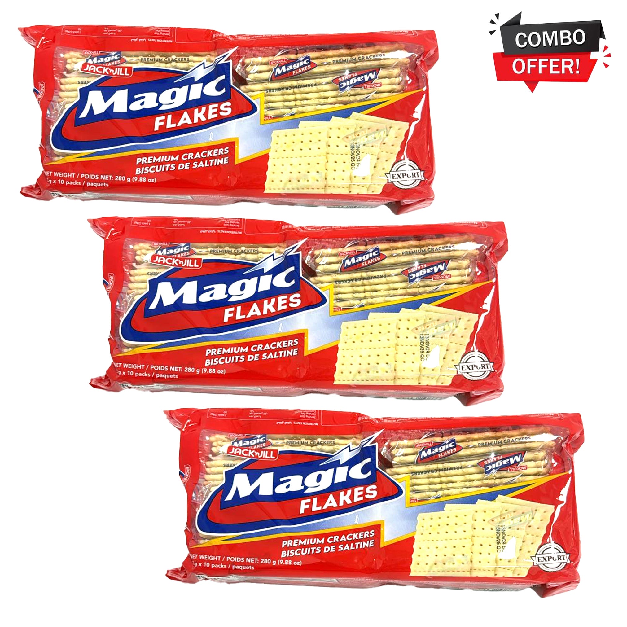 Jack 'n Jill Magic Flakes Premium Crackers – Light & Crispy Snack (280g | 10 x 28g) 3-Pack Combo