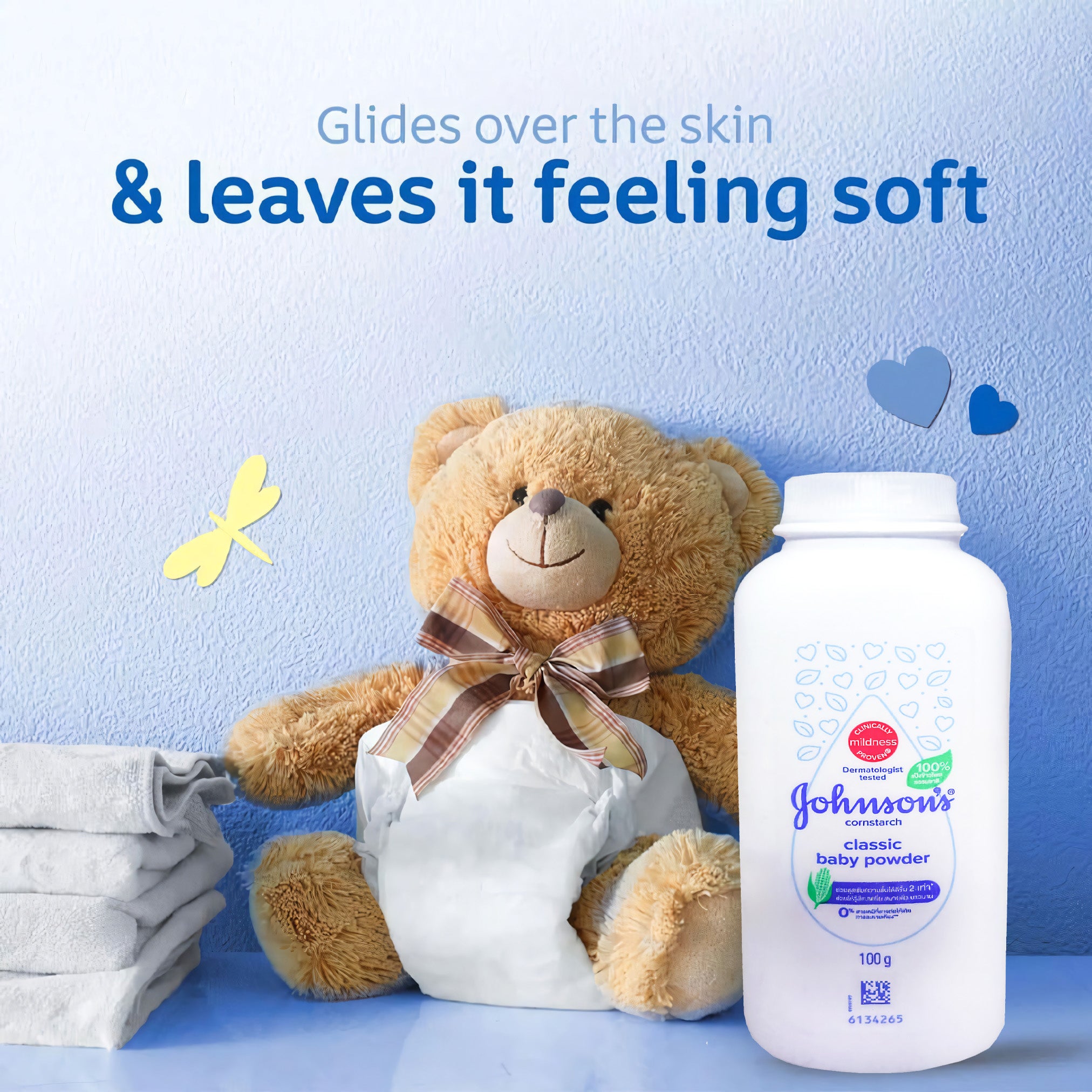 Enjoy all-day comfort and freshness with Johnson’s Cornstarch Classic Baby Powder 100g — a trusted essential for gentle care.
