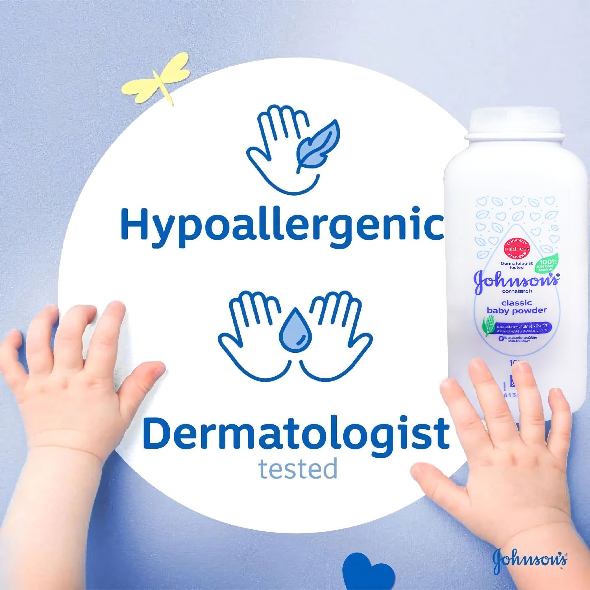 Keep skin soft, fresh, and comfortably dry with Johnson’s Cornstarch Classic Baby Powder. Made with high-quality, gentle cornstarch, this powder absorbs excess moisture and leaves skin feeling smooth and cool throughout the day. Its iconic classic baby scent delivers a clean, comforting fragrance loved by moms and babies for generations.