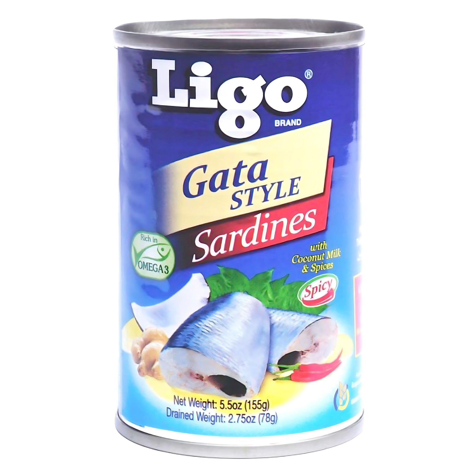 Experience the rich and creamy flavor of Ligo Gata Style Sardines, a Filipino favorite made with freshly caught sardines simmered in coconut milk (“gata”) and a blend of aromatic spices. This delicious combination delivers a savory, slightly sweet, and comforting taste that pairs perfectly with rice, bread, or as an ingredient in seafood curries and appetizers.
