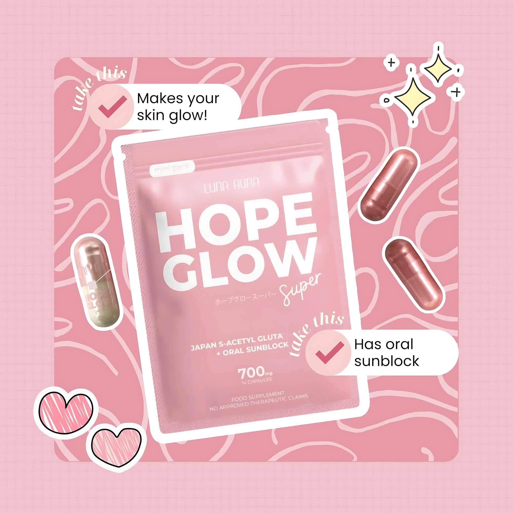 Luna Aura Hope Glow Advanced Glutathione Super Mini – 700mg (14 Capsules)
