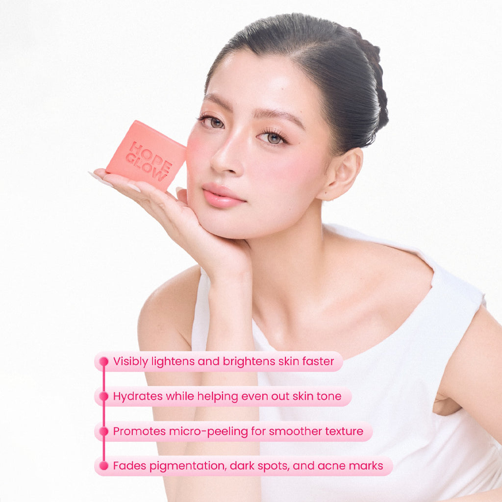 Hope Glow Intense White Soap combines gentle exfoliation and brightening ingredients to help reveal smoother, clearer, and more radiant-looking skin.