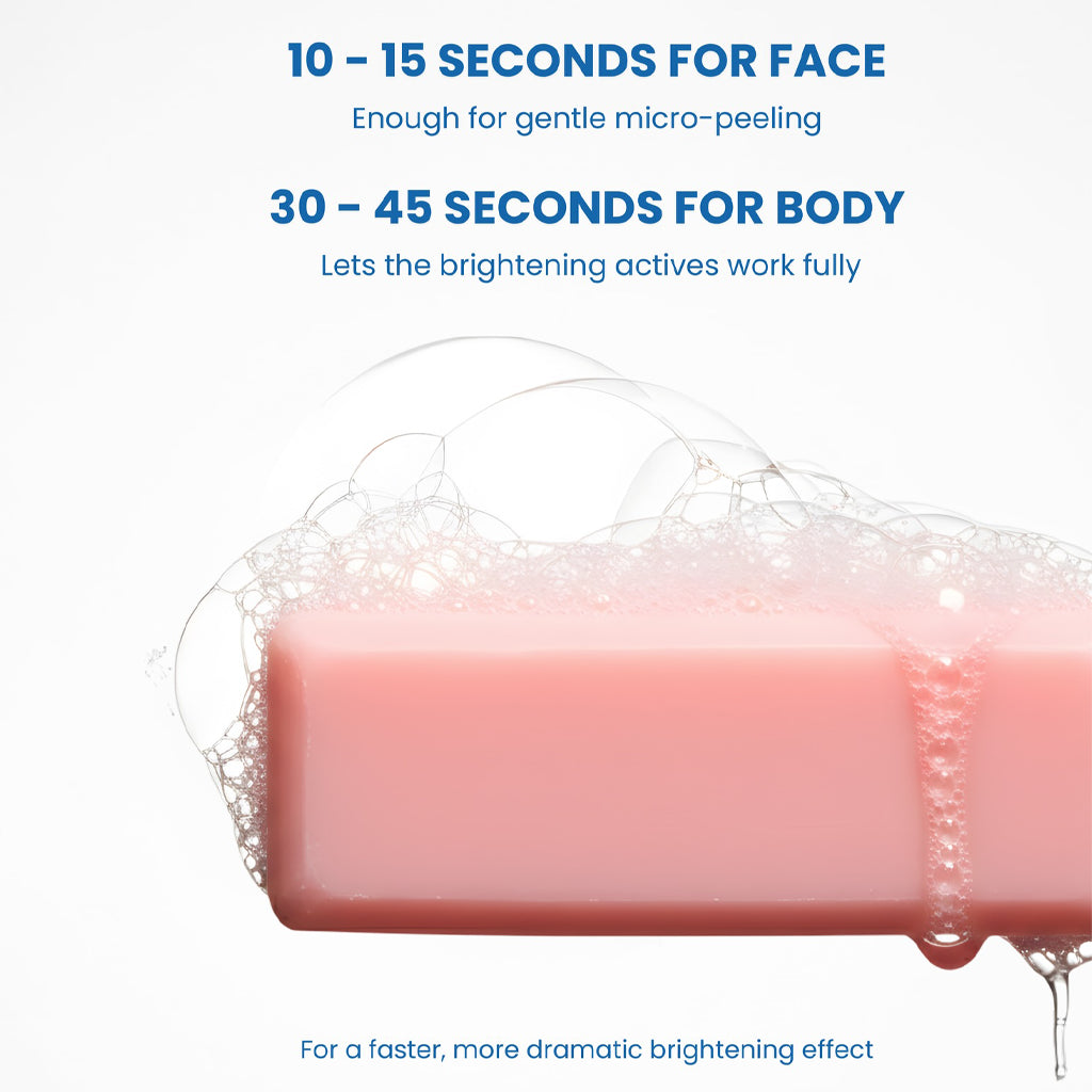 Formulated with powerful brightening ingredients like Belides™, Niacinamide, Goat’s Milk, Kojic Dipalmitate, and Alpha Arbutin, this soap helps target dark spots, uneven tone, and dullness for visible skin clarity.
