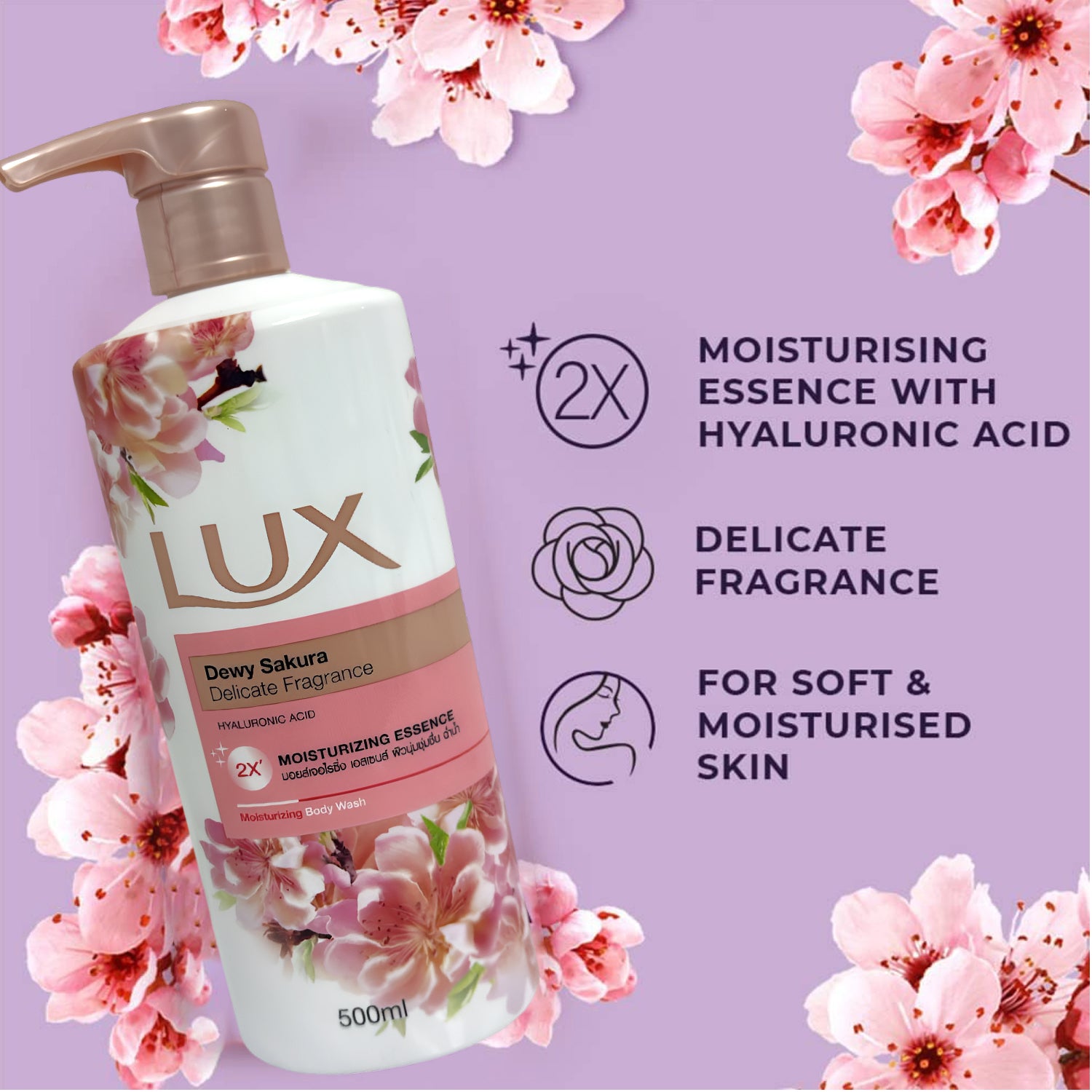 Lux Dewy Sakura 2X Moisturizing Essence Body Wash – 500ml | Deep Hydration & Delicate Fragrance