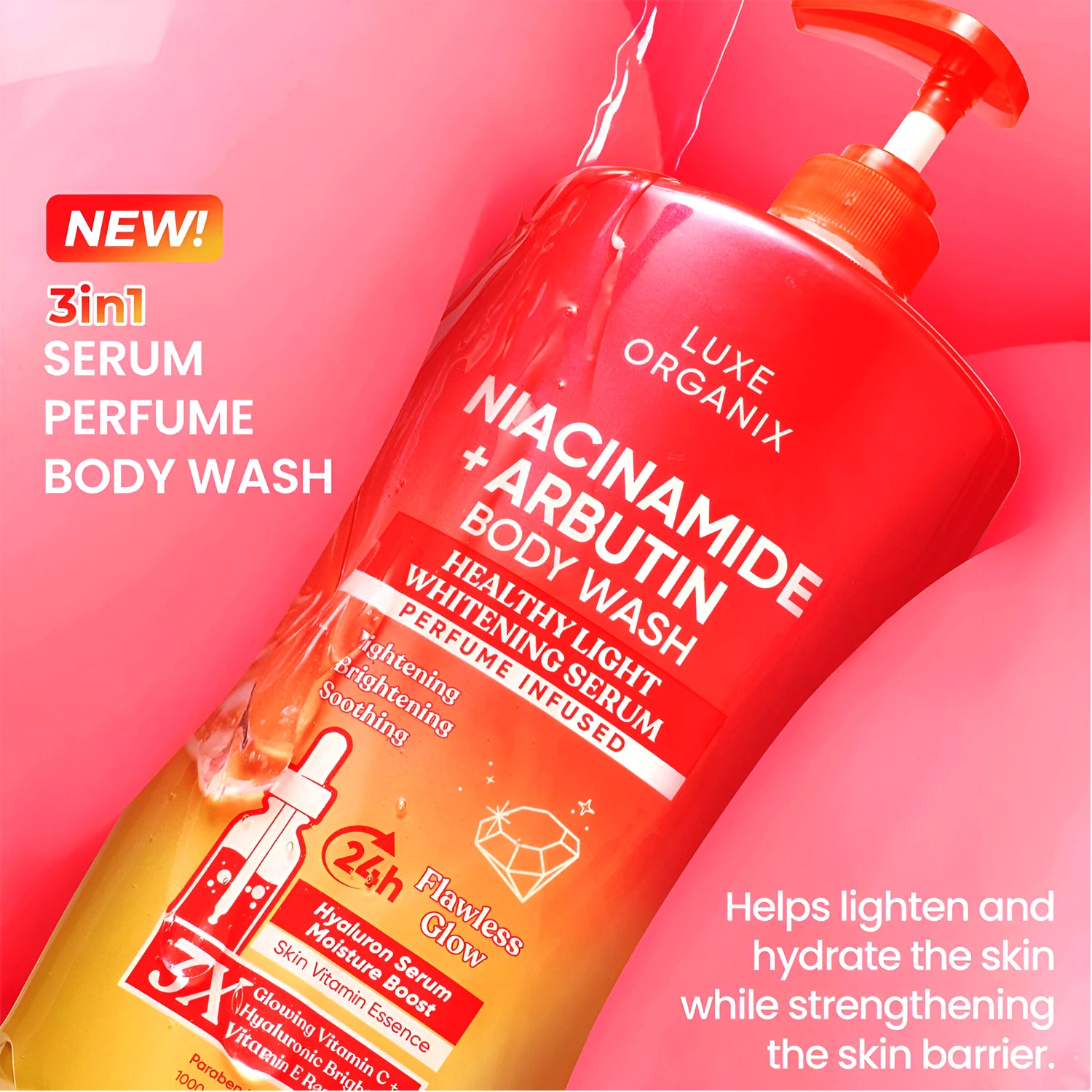 Transform your daily shower routine with the Luxe Organix Niacinamide + Arbutin Body Wash – a serum-infused formula designed to brighten, hydrate, and nourish your skin. Packed in a generous 1000ml bottle, this body wash offers long-lasting use for all skin types, including sensitive and acne-prone skin.