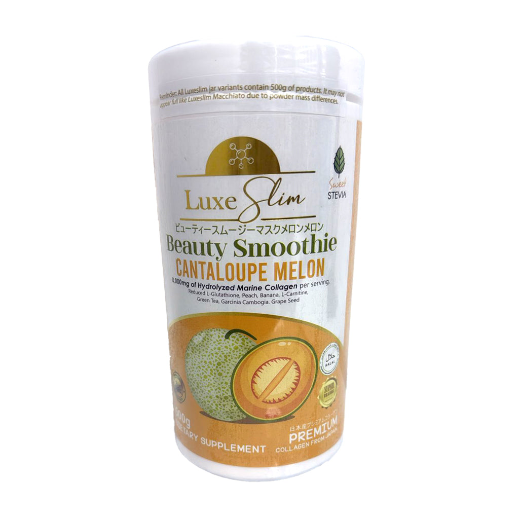 Luxe Slim Beauty Smoothie Cantaloupe Melon Jar – 500g Dietary Supplement Drink with 80,000mg Hydrolyzed Collagen
