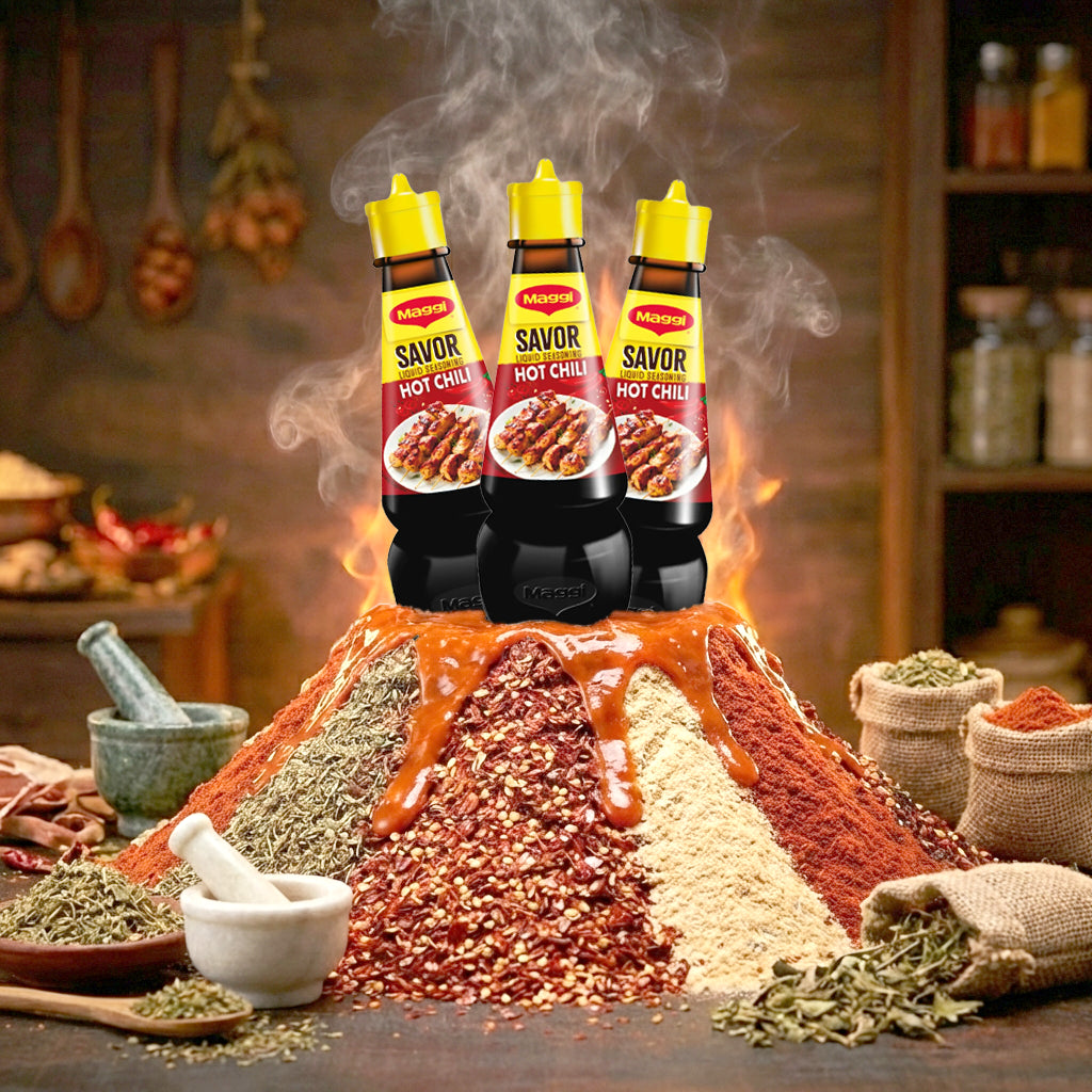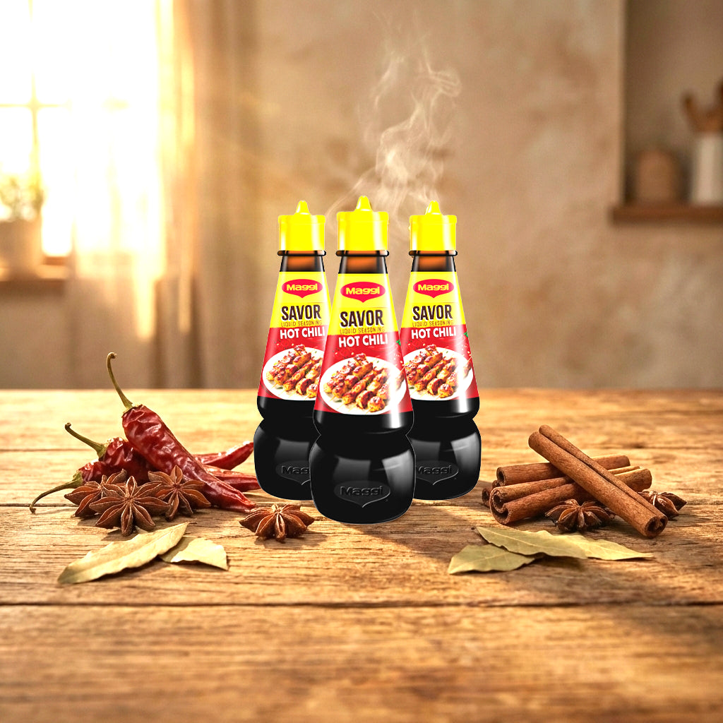 Add heat, depth, and savory goodness to every bite with Maggi Savor Hot Chili — the perfect seasoning for those who love their food with a spicy twist!