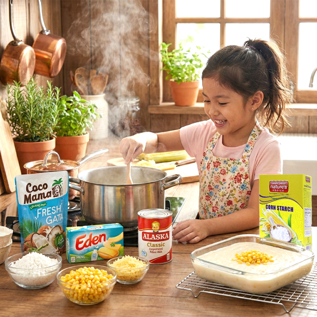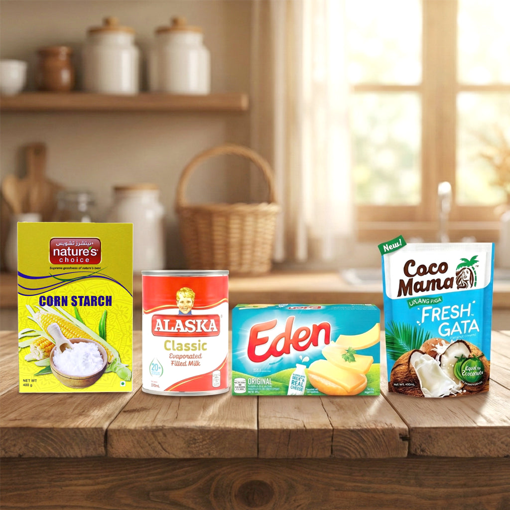 This combo includes the essential ingredients to prepare the classic coconut corn pudding loved in every Filipino celebration.