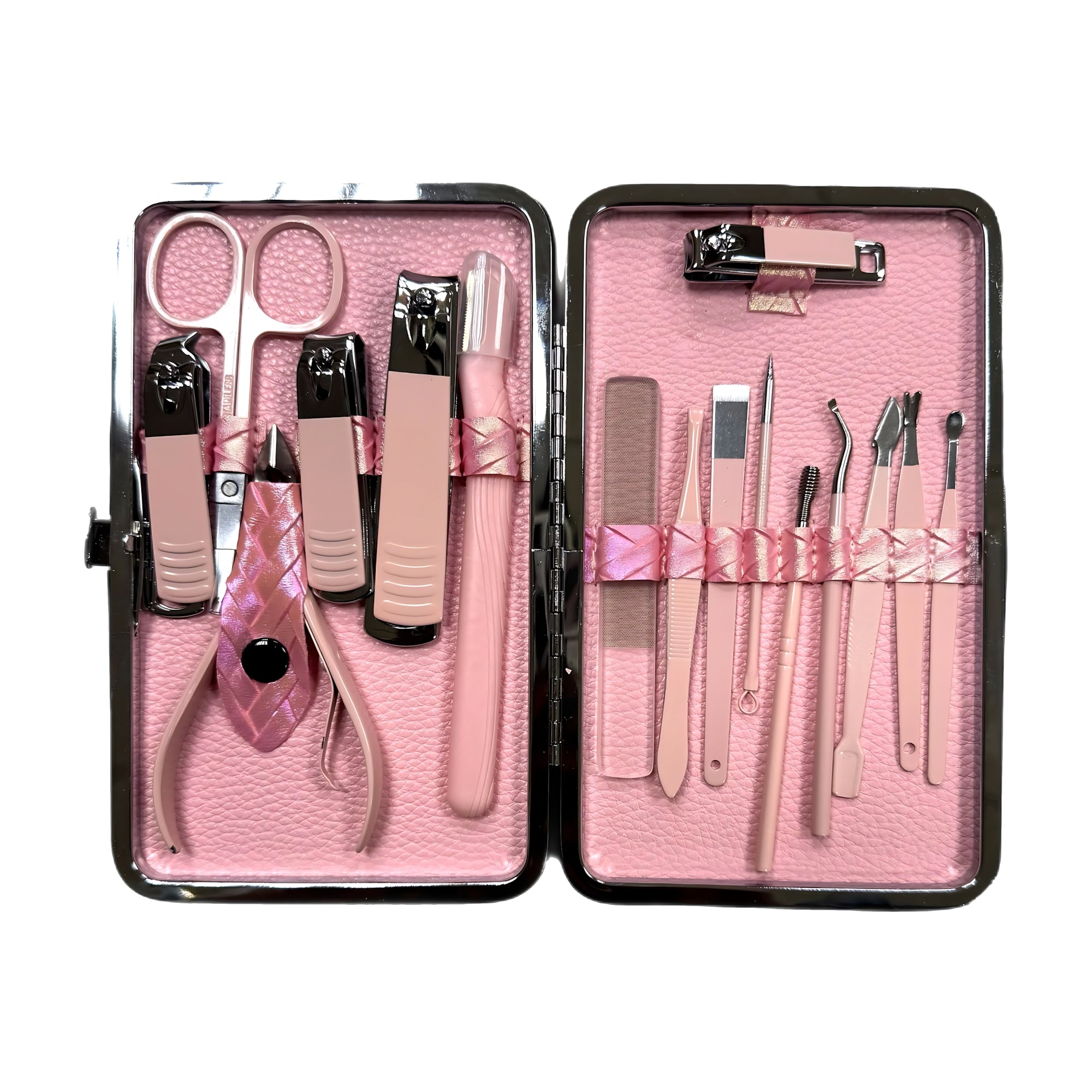 Complete 16-piece kit for manicure, pedicure, and facial care
