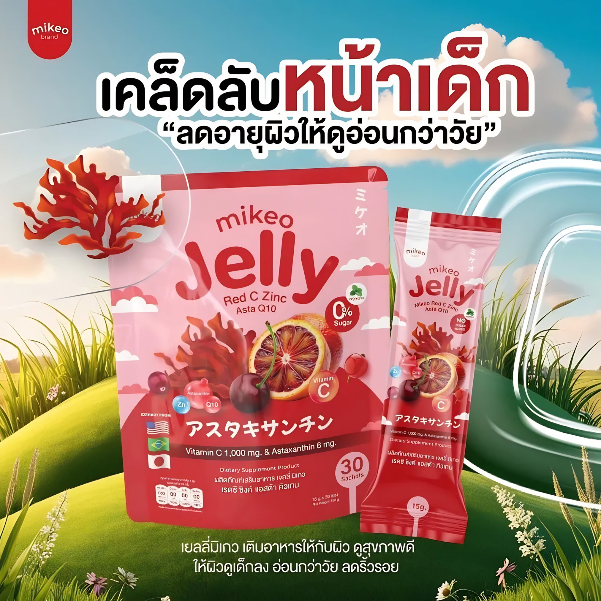 Nourish your skin from within with Mikeo Jelly Red C Zinc Asta Q10 — the delicious beauty jelly that helps you glow with youthful confidence every day.