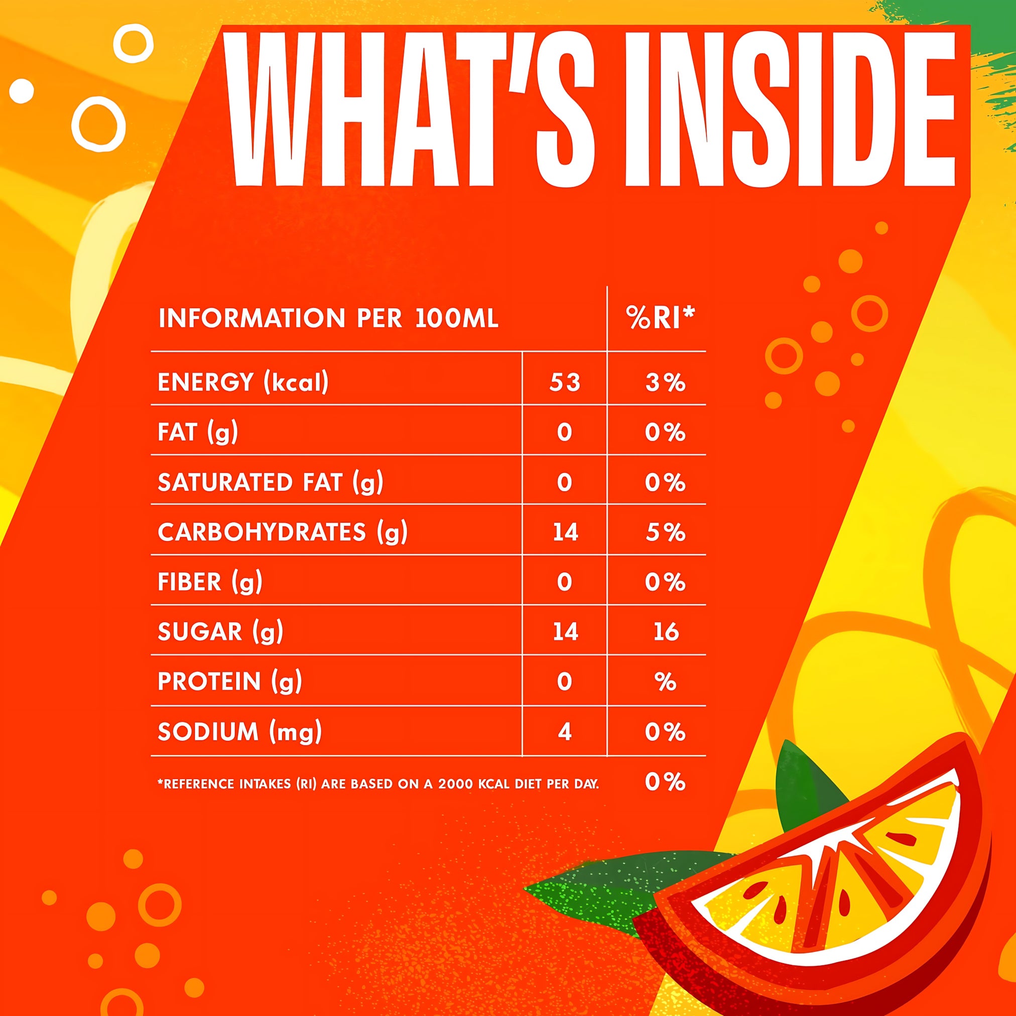 Carbonated Water, Sugar, Acidity Regulators (330, 331), Natural Flavouring Substances, Sweeteners (Sucralose [955], Steviol Glycoside [960a]), Preservative (211), Stabilizer (444), Colour (110).