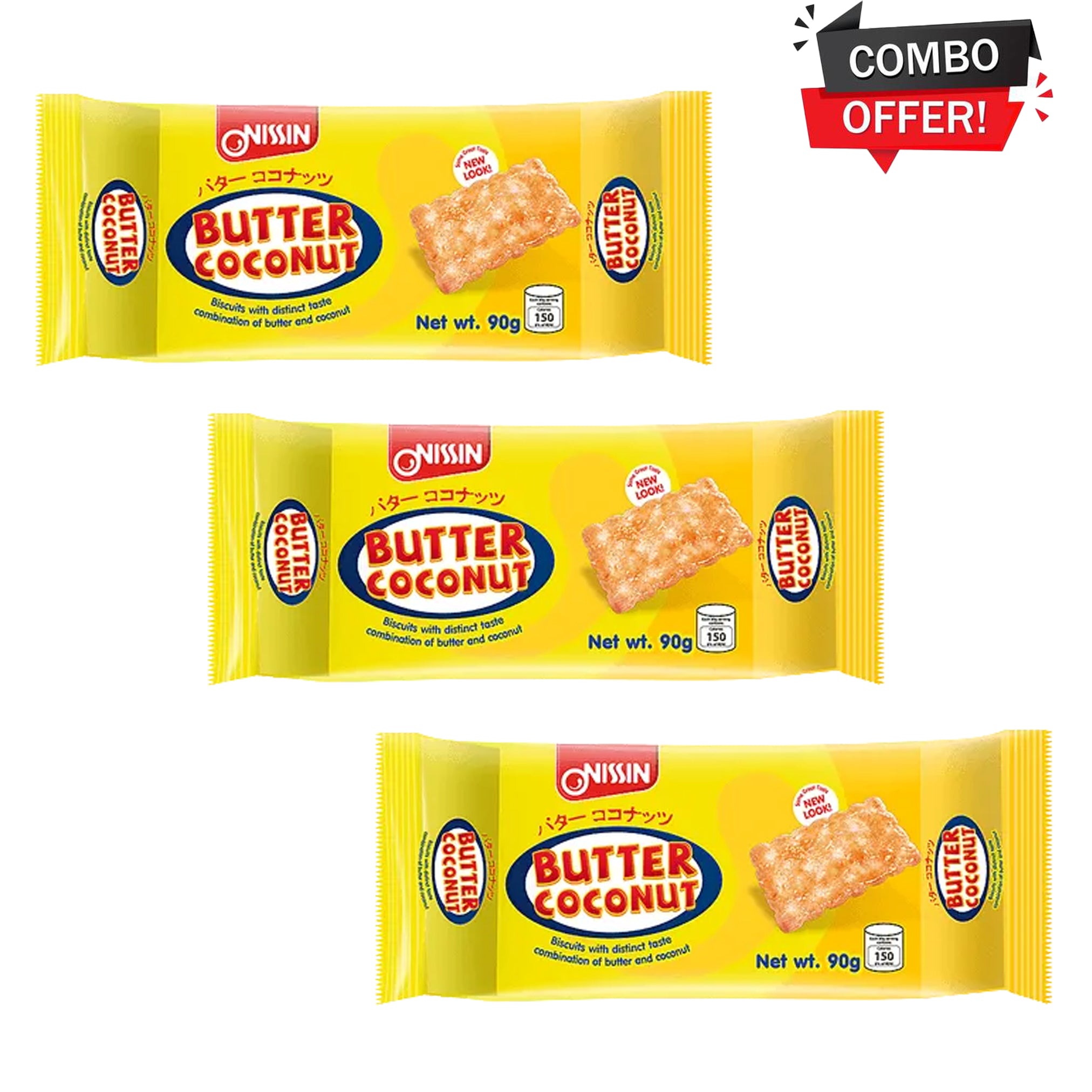 Nissin Butter Coconut Biscuits – 90g (3 Pack Combo)