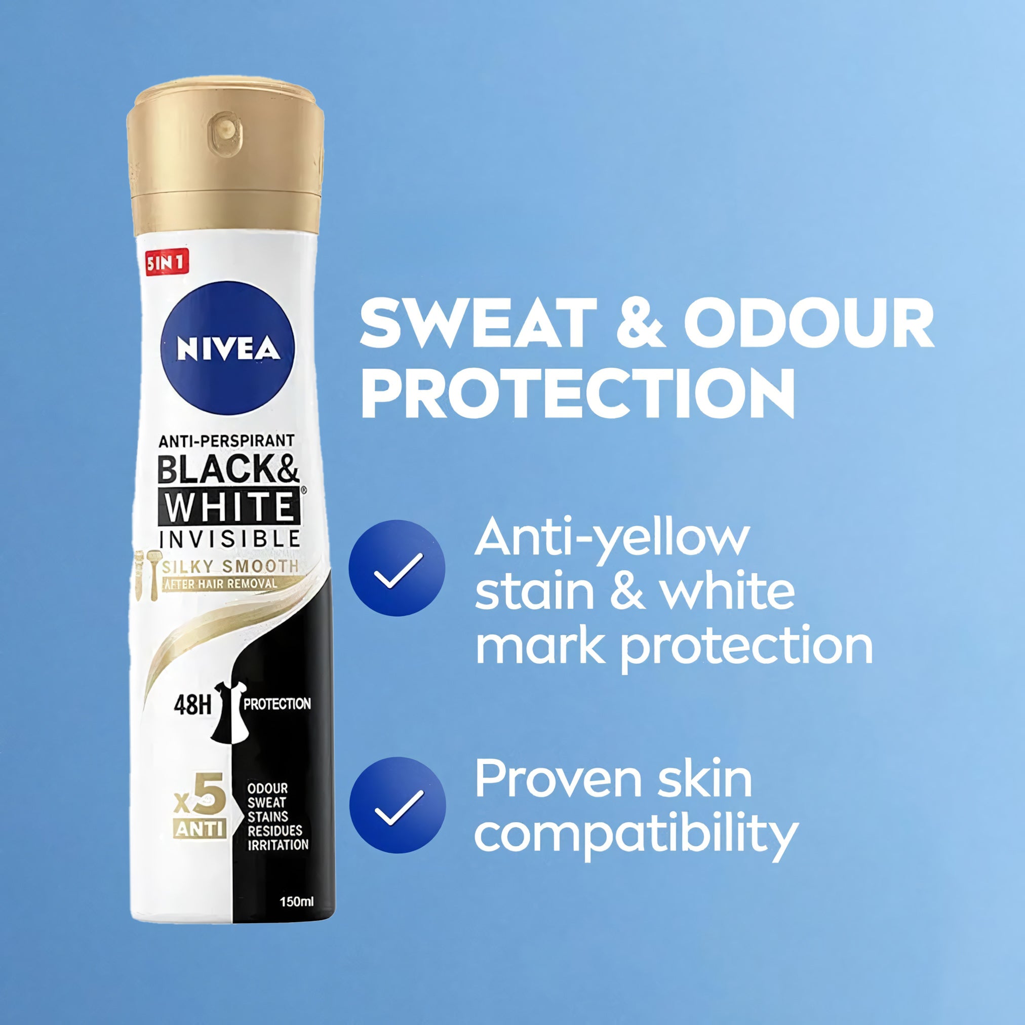 NIVEA Black & White Invisible Silky Smooth Anti-Perspirant Spray – 150ml