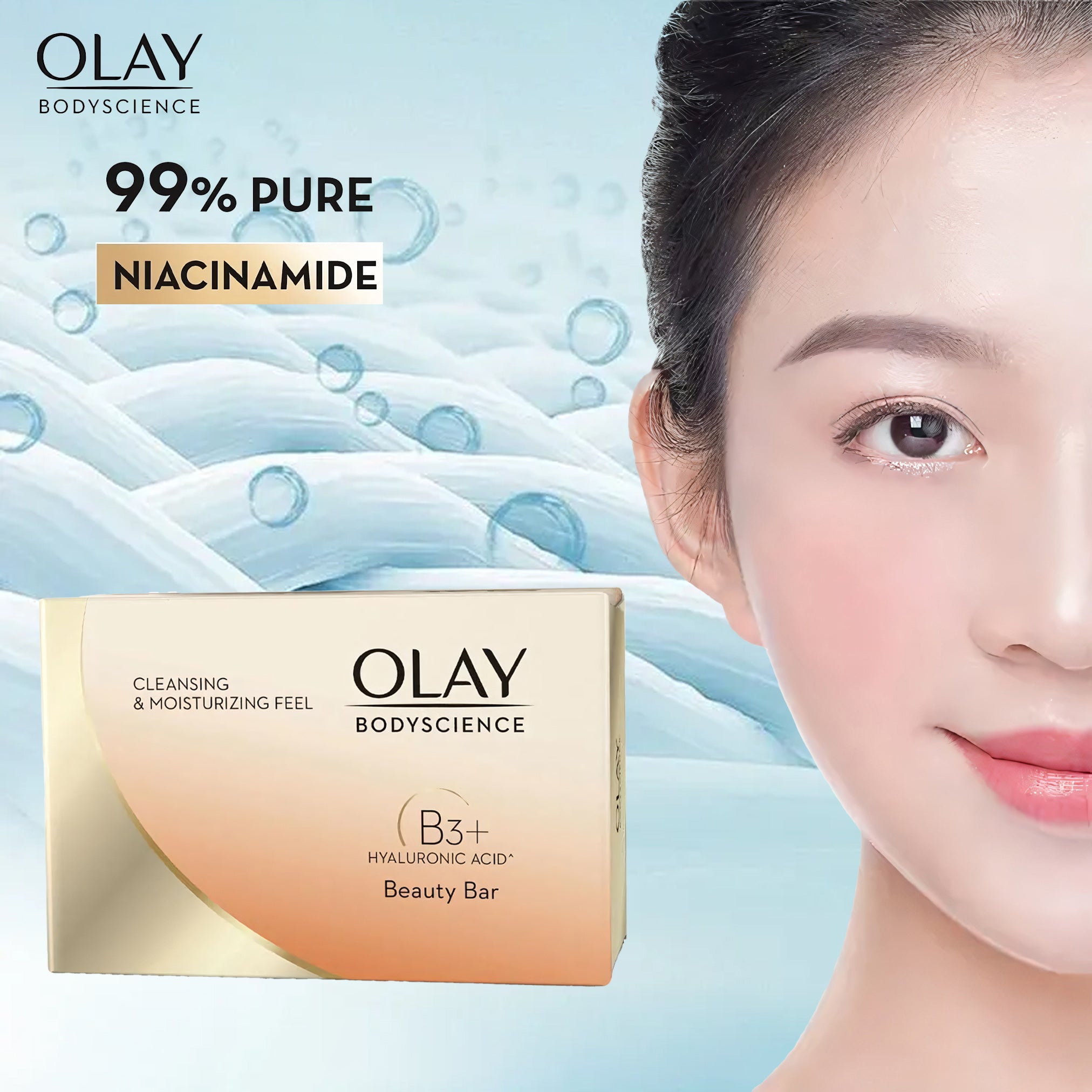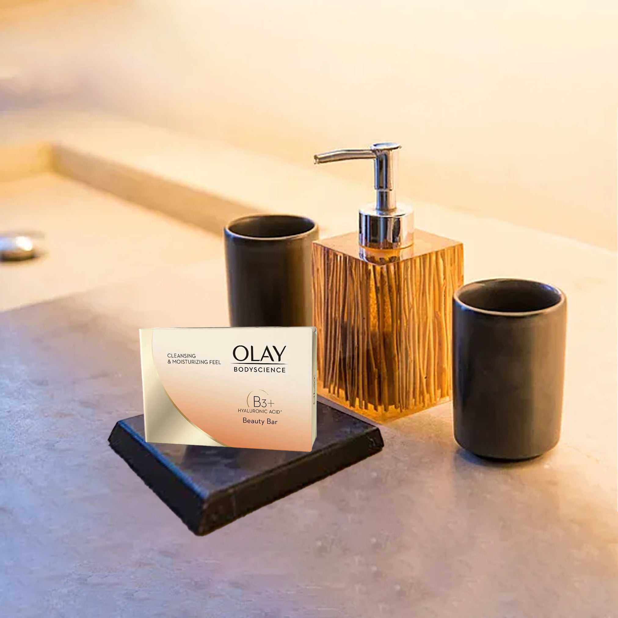 Pamper your skin with Olay BodyScience B3 + Hyaluronic Acid — the perfect blend of hydration and brilliance in one luxurious beauty bar.