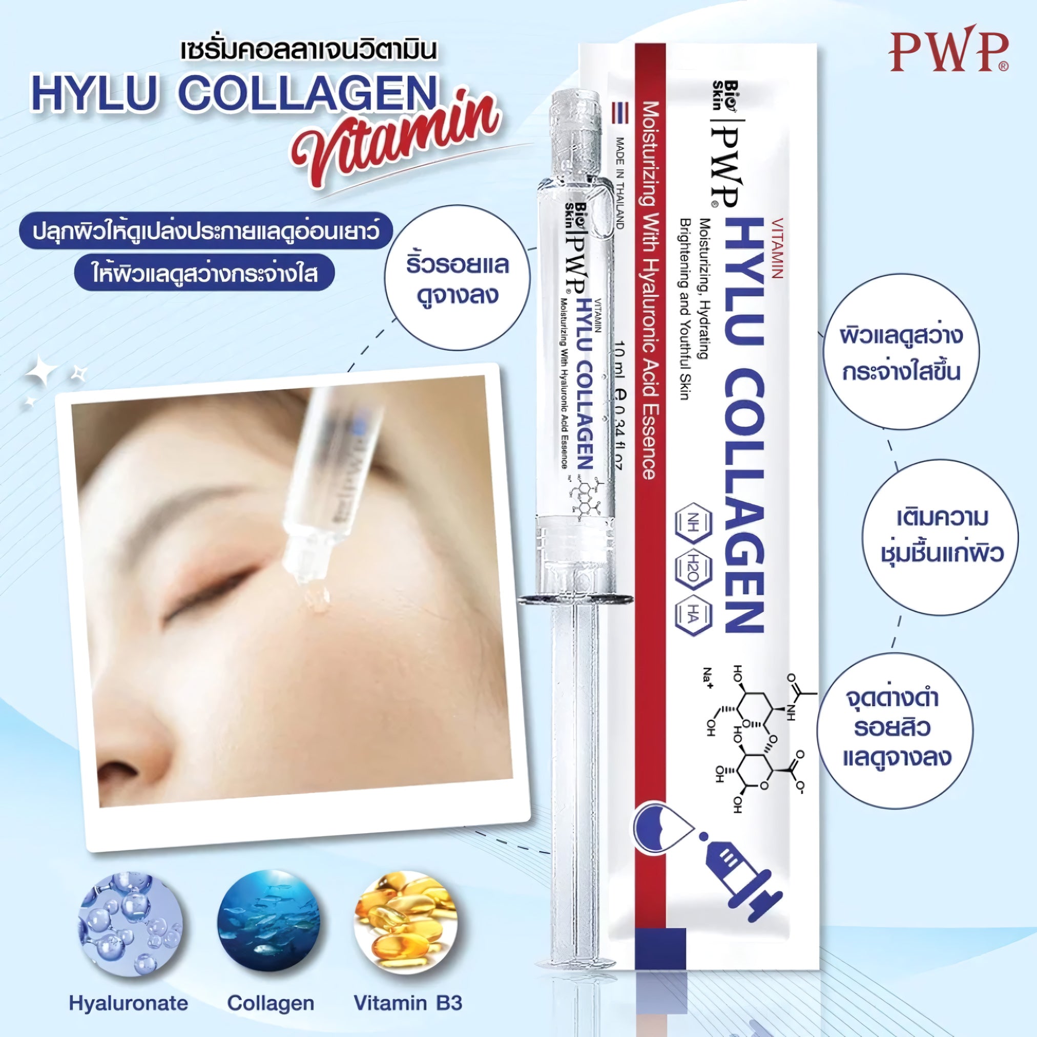 Reveal smoother, glowing, youthful skin with PWP Hylu Collagen Vitamin Serum, a highly concentrated Thai skincare essence designed to deeply hydrate, brighten, and rejuvenate your complexion. With its fast-absorbing, non-greasy formula, this serum delivers powerful active ingredients directly into the skin, making it ideal for all skin types—including sensitive skin.