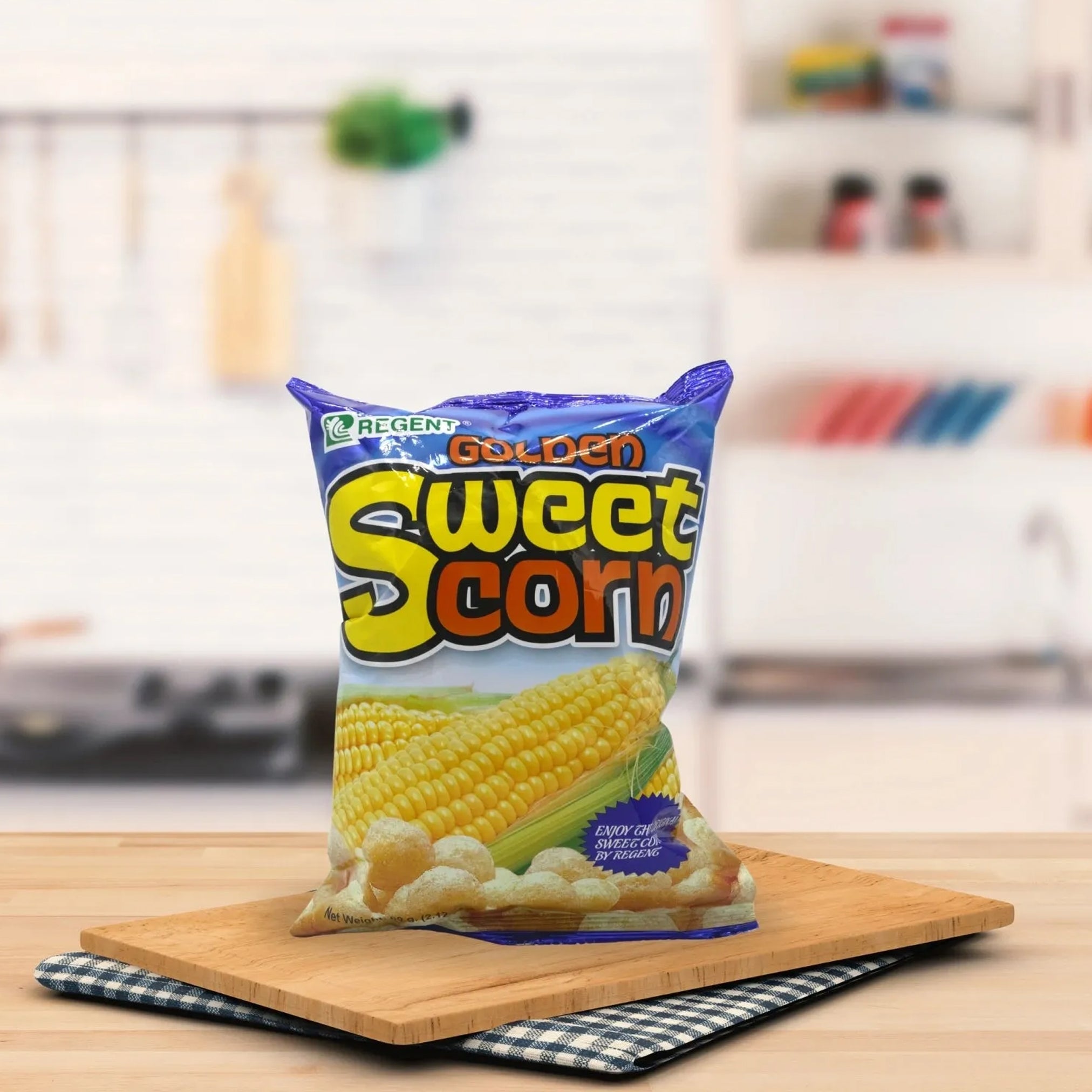 Enjoy the irresistible taste of Regent Golden Sweet Corn, a light and crunchy snack bursting with the flavor of freshly roasted sweet corn. Each bite-sized corn puff delivers the perfect balance of sweet and salty goodness, making it a favorite treat for all ages.
