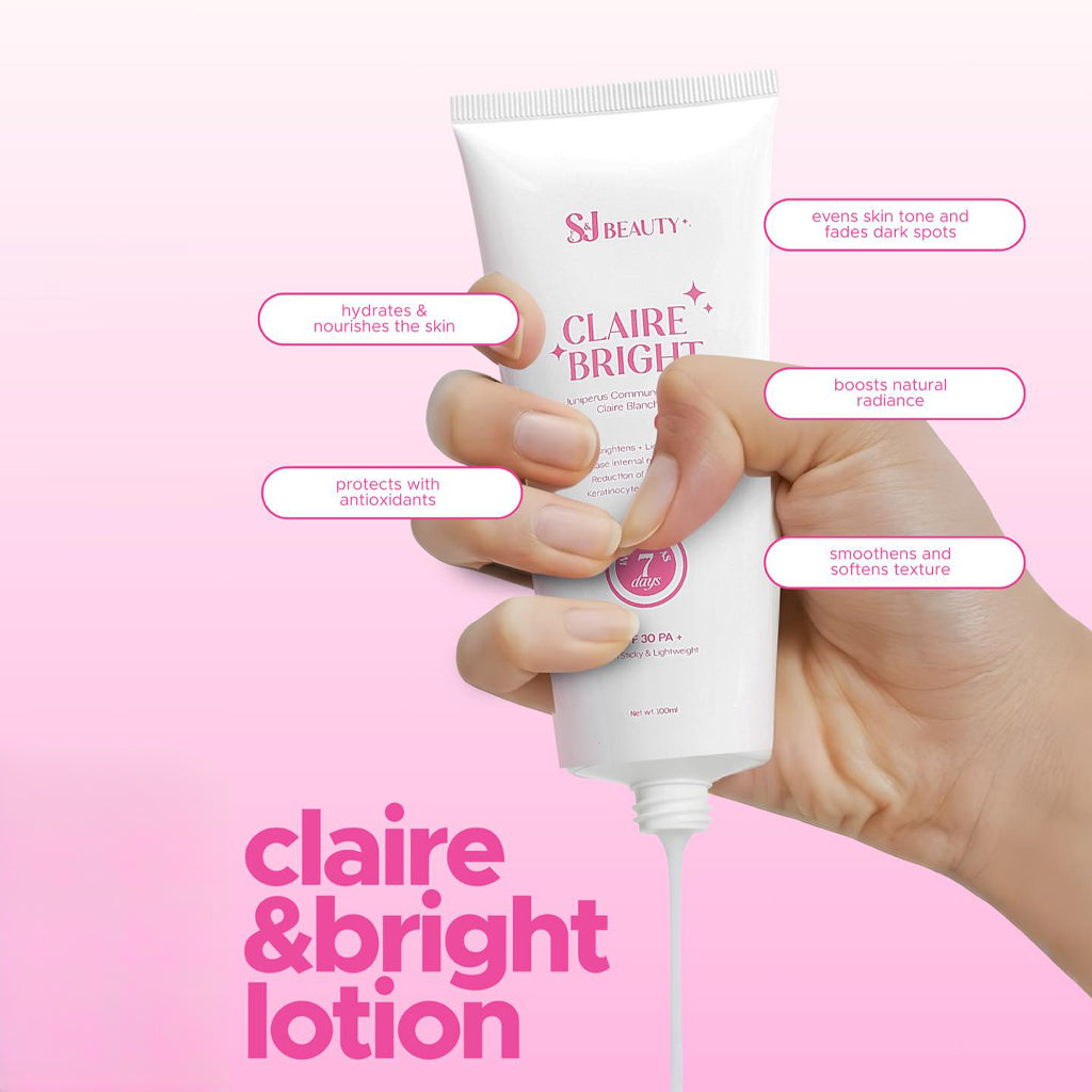 S&J Beauty Claire & Bright Lotion — your skin’s new BFF for brighter, smoother, and protected glow every day.