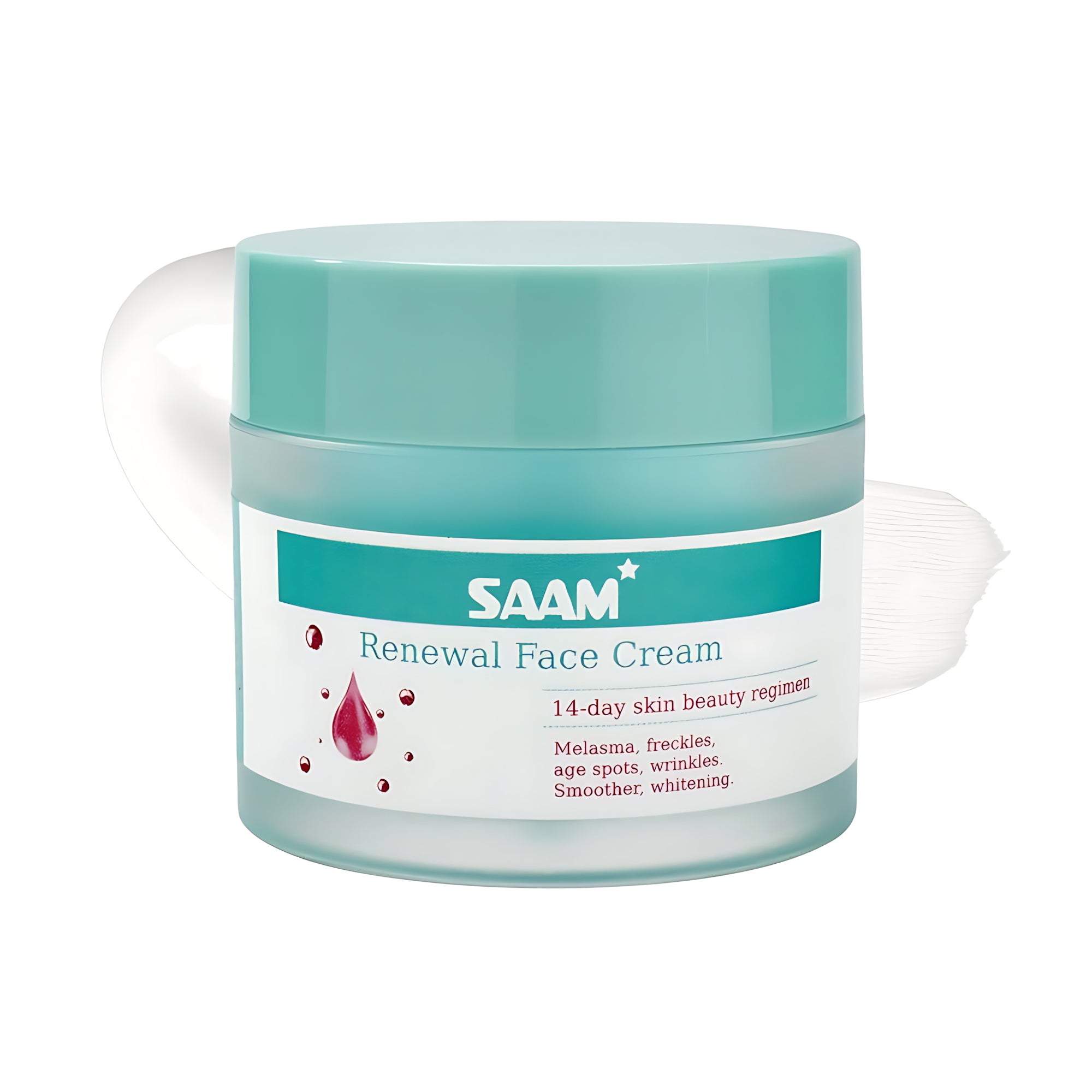 Transform your skincare routine with SAAM Renewal Face Cream, an advanced formula designed to combat pigmentation, restore skin health, and reveal a brighter, smoother complexion. Specially developed to target melasma, freckles, age spots, and dark spots, this cream delivers visible results in as little as 2–3 weeks.