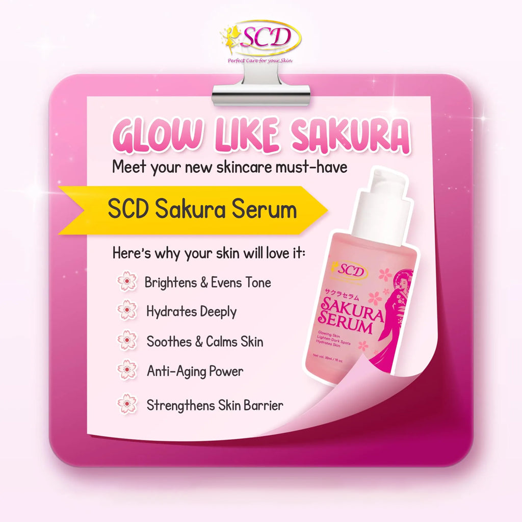 Achieve that banat-look na fresh, hindi haggard with SCD Sakura Serum, a lightweight yet concentrated serum formulated to hydrate deeply, refine pores, and visibly improve skin texture. Infused with sakura-inspired care, this serum works to calm, brighten, and firm the skin—helping you get that coveted crystal glass-skin glow.