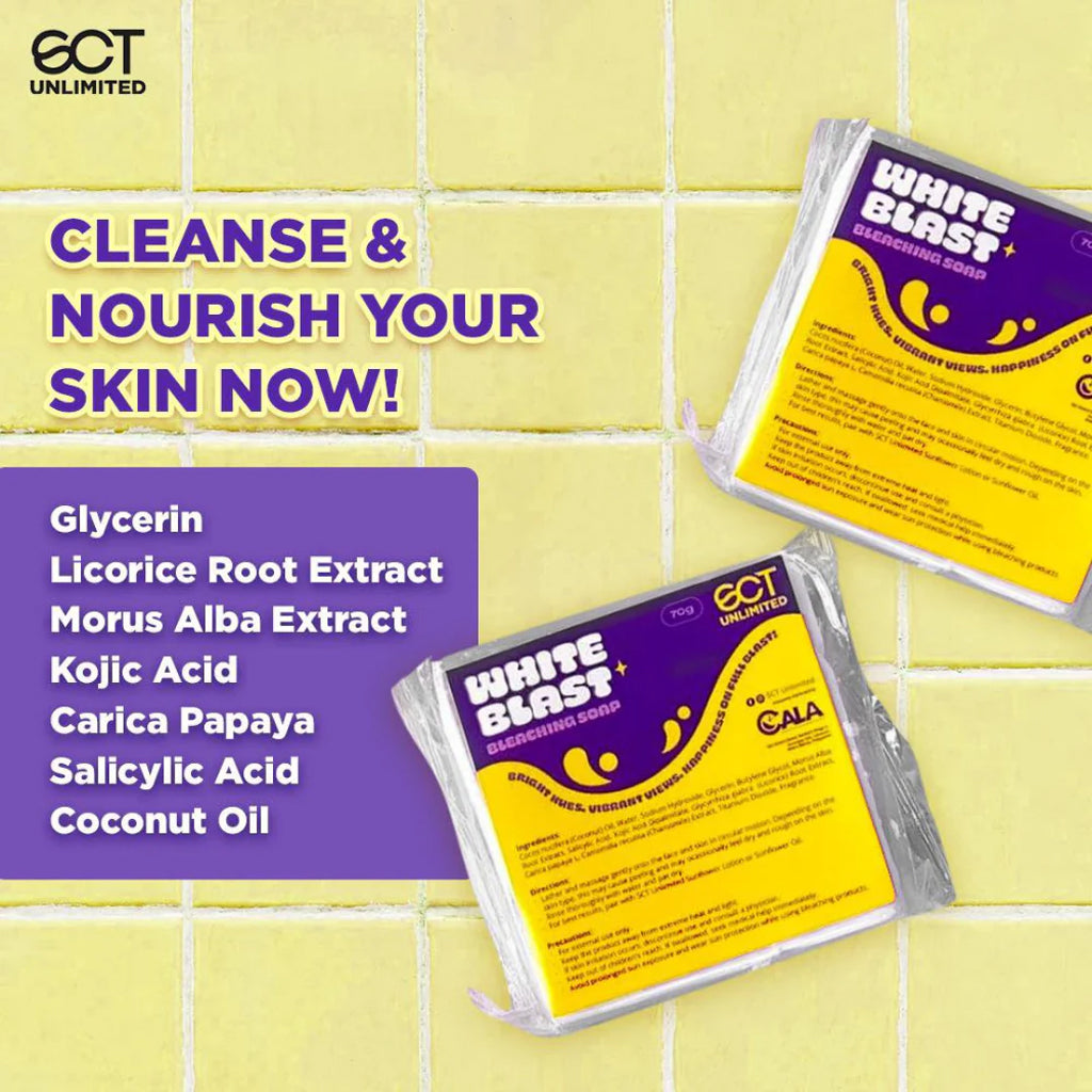 Achieve that glowing, vibrant skin with the SCT Unlimited White Blast Bleaching Soap—your daily cleansing essential for clearer, brighter, and healthier-looking skin.