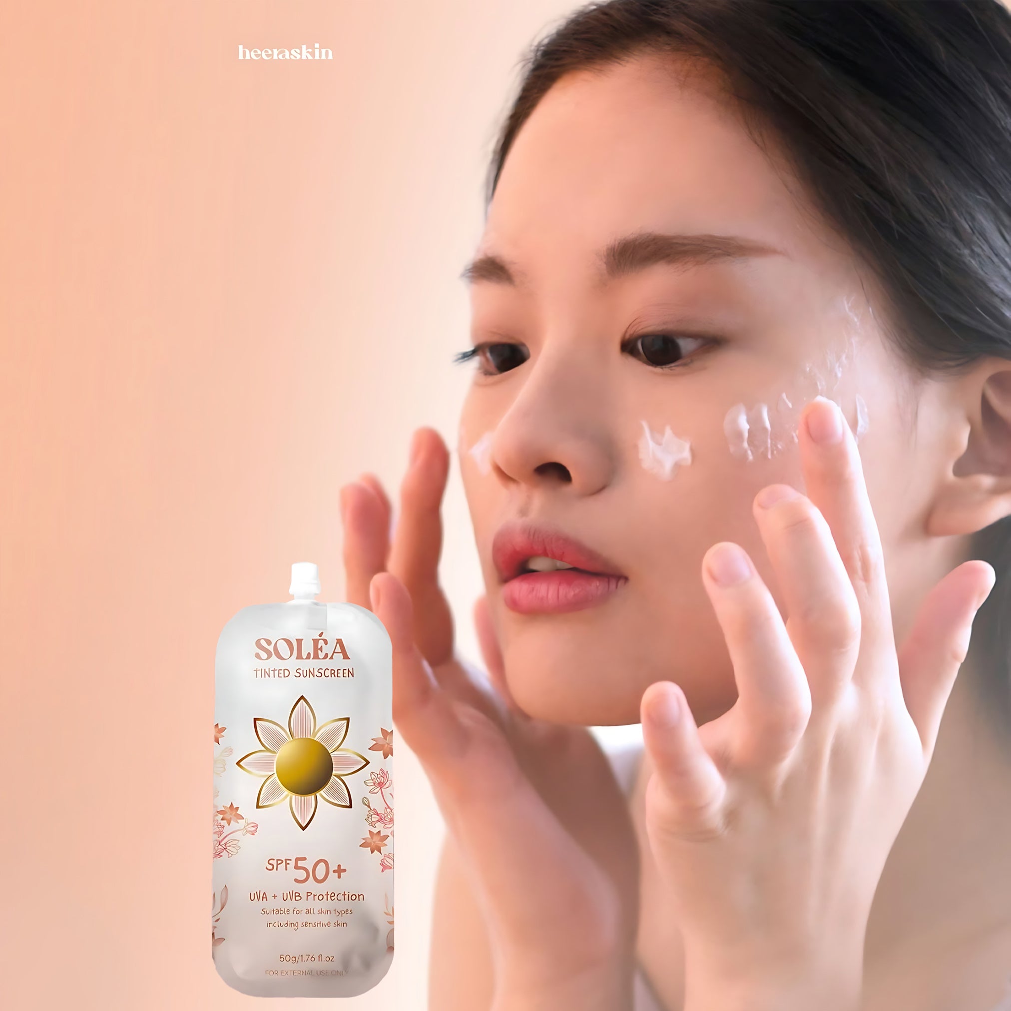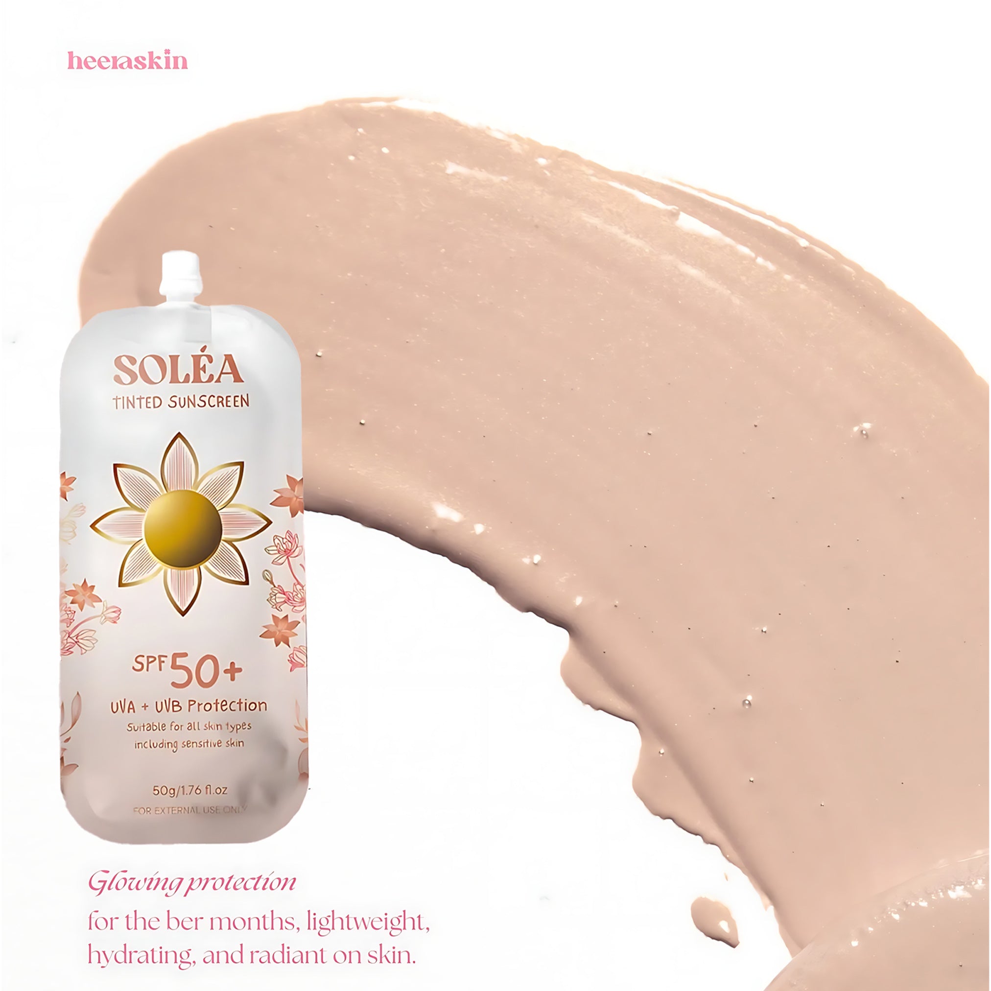 Meet Solea Tinted Sunscreen, your daily skin-shield and glow-booster in one. This lightweight hybrid formula delivers broad-spectrum SPF 50+ protection while giving your skin a natural tint for that fresh, radiant “no-makeup” look.