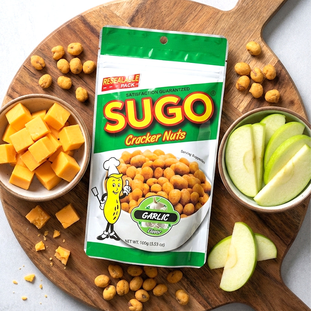 Whether you’re snacking at home, at work, or sharing with friends, Sugo Garlic Peanuts are guaranteed to hit the spot.