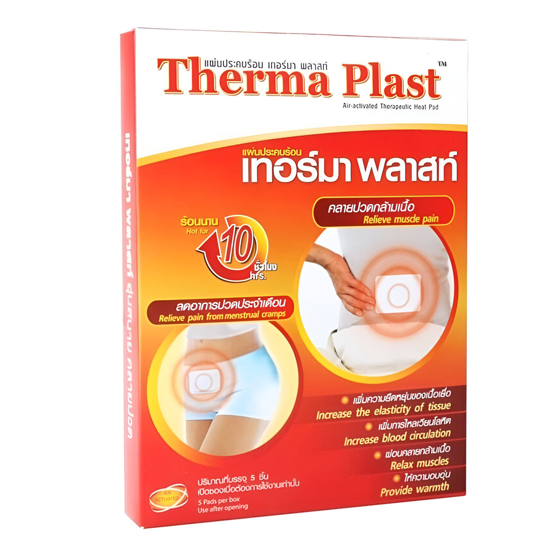 THERMA PLAST Heat Pads are single-use, air-activated heating patches designed to deliver up to 12 hours of consistent therapeutic warmth. Ideal for alleviating discomfort from menstrual cramps, muscle stiffness, backaches, and general body pain, these pads offer a convenient and portable solution for on-the-go relief.