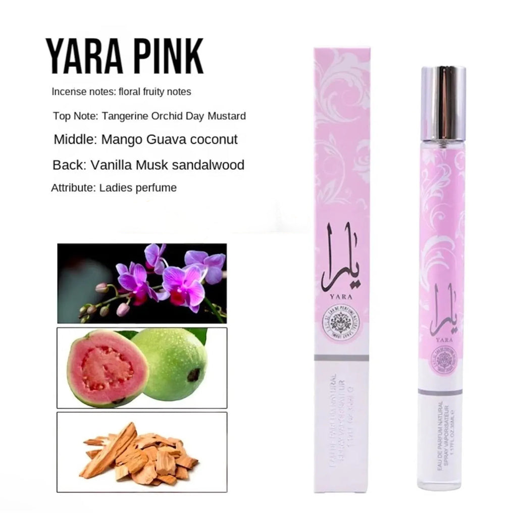 Yara Pink is known for its charming blend of fruity sweetness, delicate florals, and a smooth vanilla-musk finish — creating a scent that feels warm, playful, and effortlessly elegant.